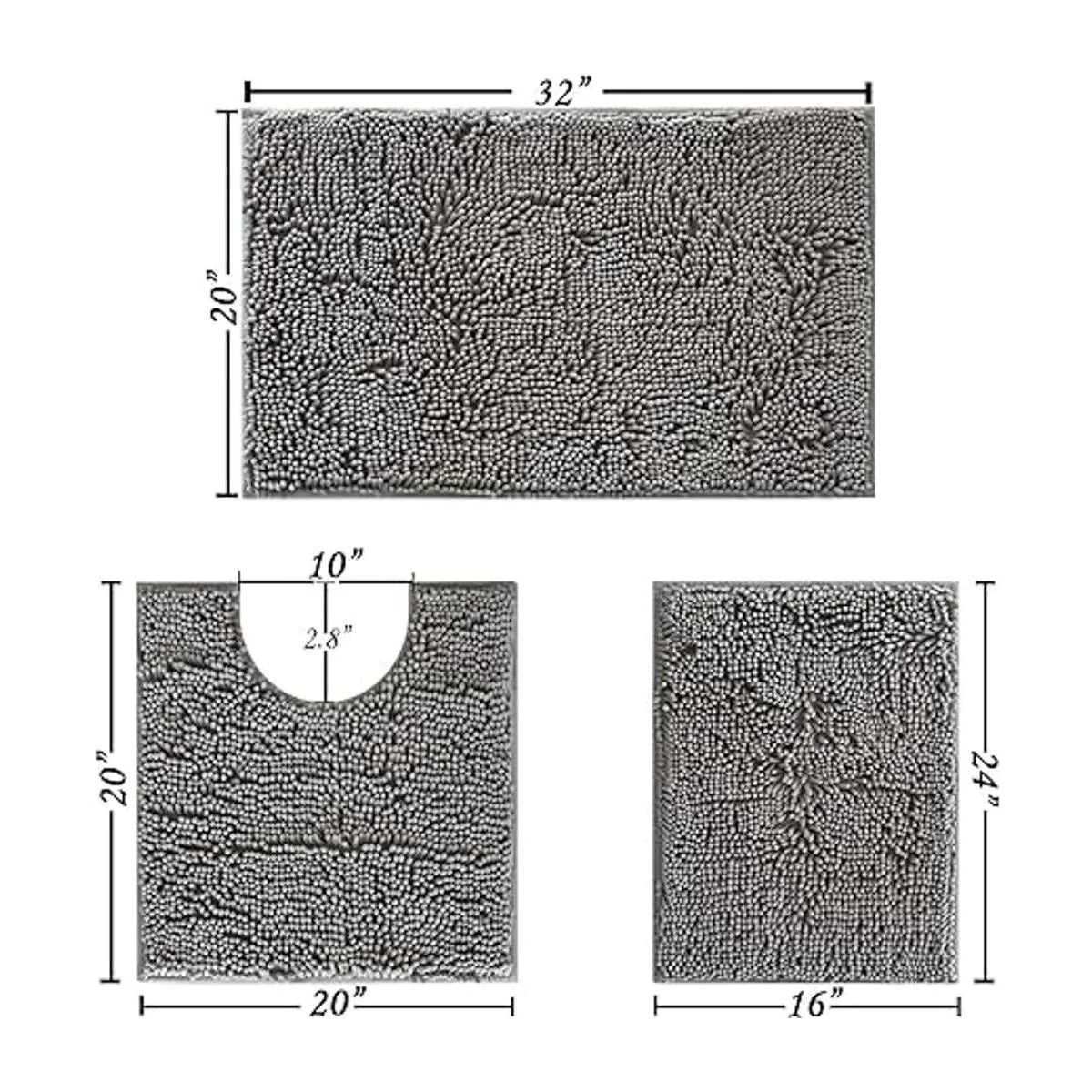 Alfombra de baño perfecta: nuestras 3 alfombras de baño incluyen 1 alfombra de baño pequeña de 16 x 24 pulgadas, 1 alfombra de inodoro en forma de U de 20 x 20 pulgadas, 1 alfombra de baño grande de 20 x 32 pulgadas. Material de chenilla, mima tus pies Nuestro juego de alfombrillas de baño cuenta con un lujoso, más grueso y mejor construido que la mayoría de otras alfombras, adecuado para hoteles, sauna, ducha, gimnasio para baño, dormitorio, comedor, sala de estar, etc.