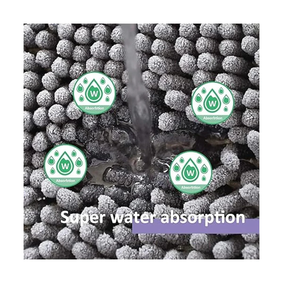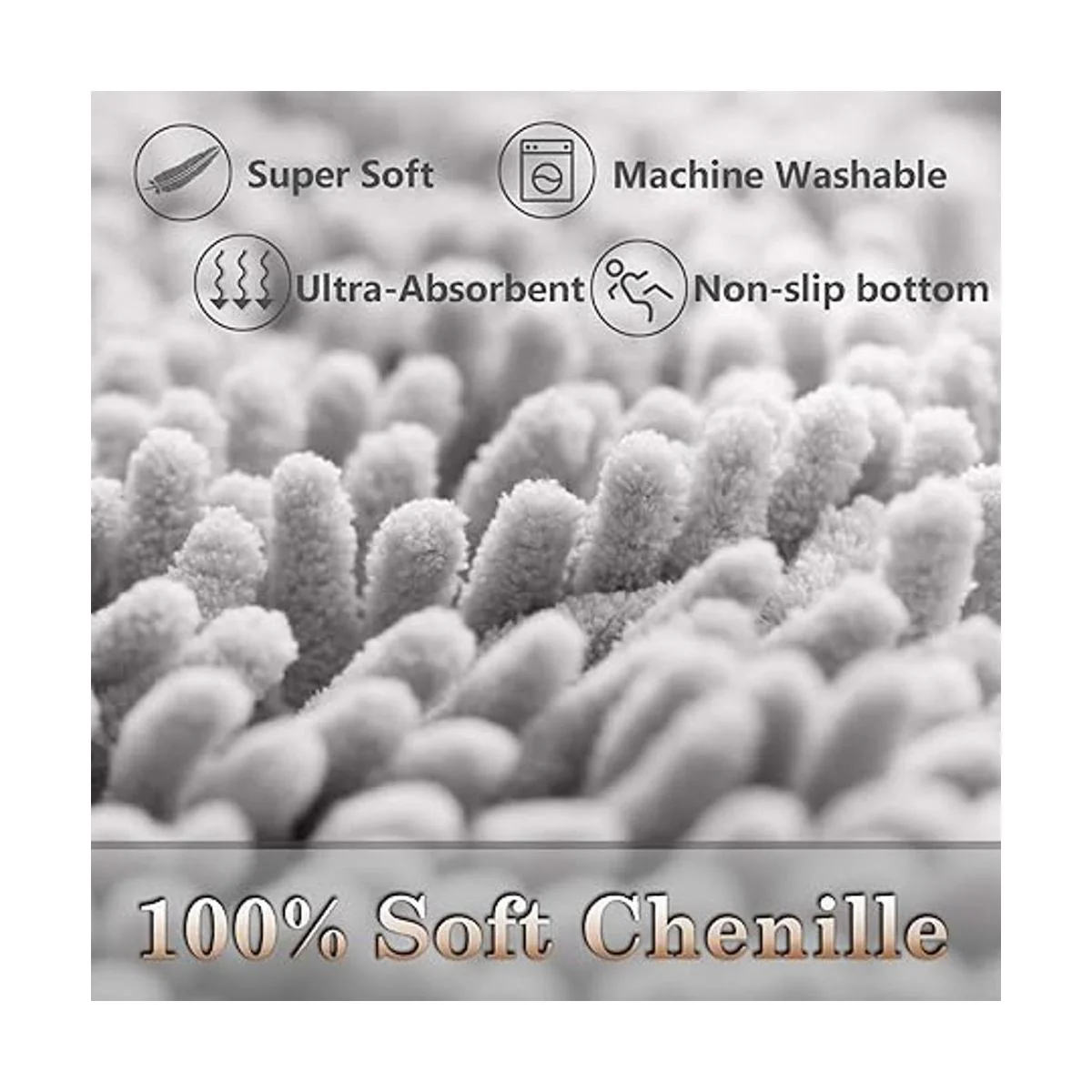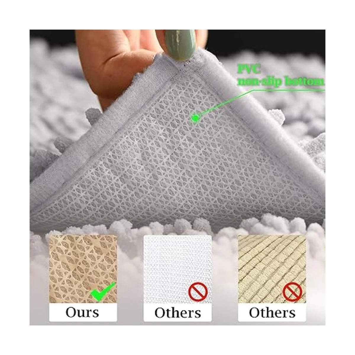 Alfombrillas de baño de absorción de agua superior Los juegos de alfombras de baño están hechos de 3 capas, la capa superior es un pelo de microfibra individual de 1 pulgada de largo, que está hecho de tela de chenilla gruesa, la capa media es una esponja, la parte inferior es de malla de PVC. La tela de felpilla gruesa y de pelo alto ayuda a evitar que tus suelos goteen agua mientras sales de la bañera, jacuzzi, ducha o te preparas junto al fregadero, puede ayudar a absorber el agua en cuestión de segundos, lo que permite que la alfombra se seque rápida y limpiamente.