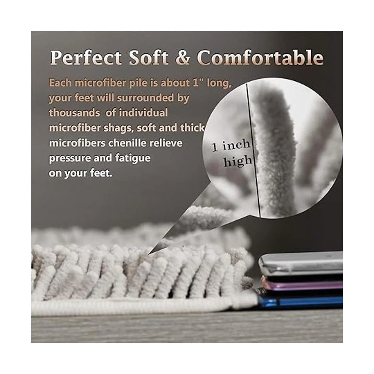 Alfombras de baño ultrasuaves Nuestra alfombrilla de baño para el baño está hecha de miles de pelusas de microfibra individuales, que son más suaves y densas, acogedoras, peludas, cómodas, ofrecen una suavidad excepcional y comodidad a tus dedos de los pies, y protegen tus pies del frío suelo del baño. Cada pelo de microfibra mide aproximadamente 1 pulgada de largo, lo que hace que tus pies estén rodeados de miles de pelusas individuales de microfibra.