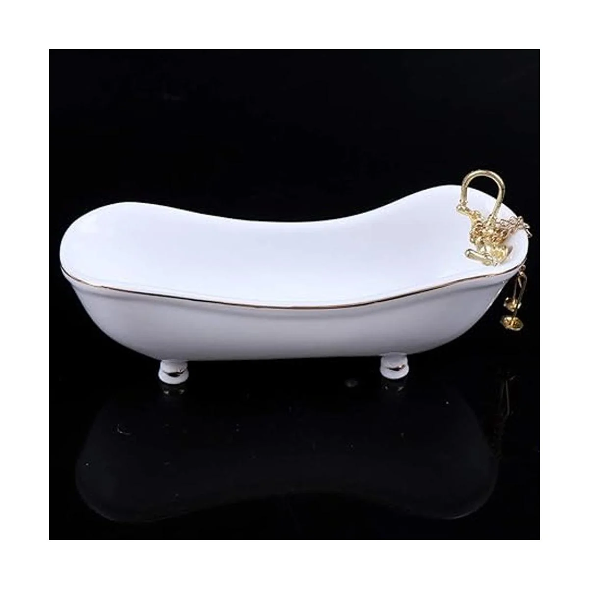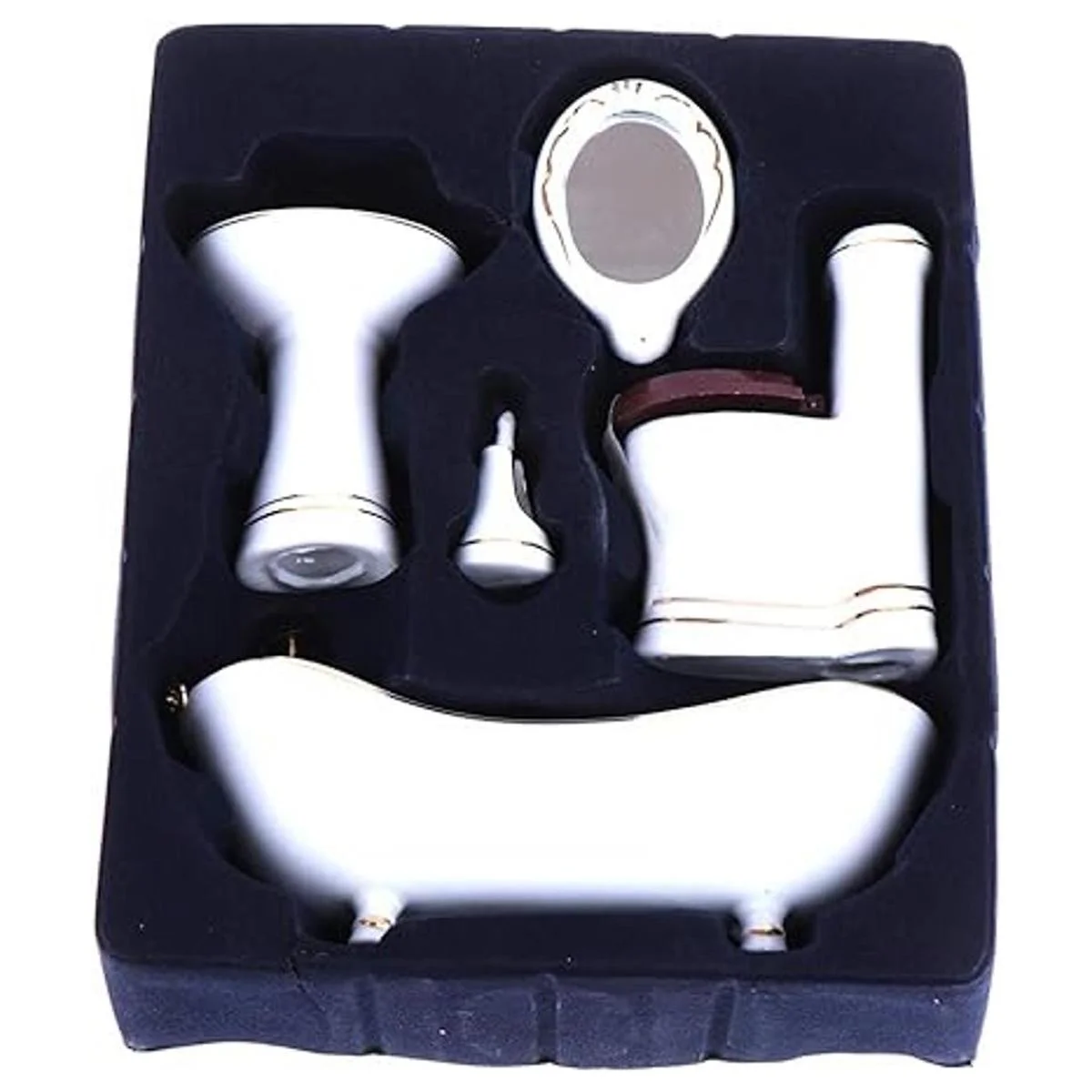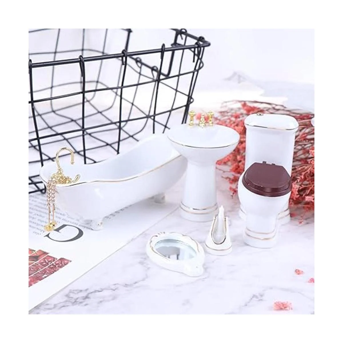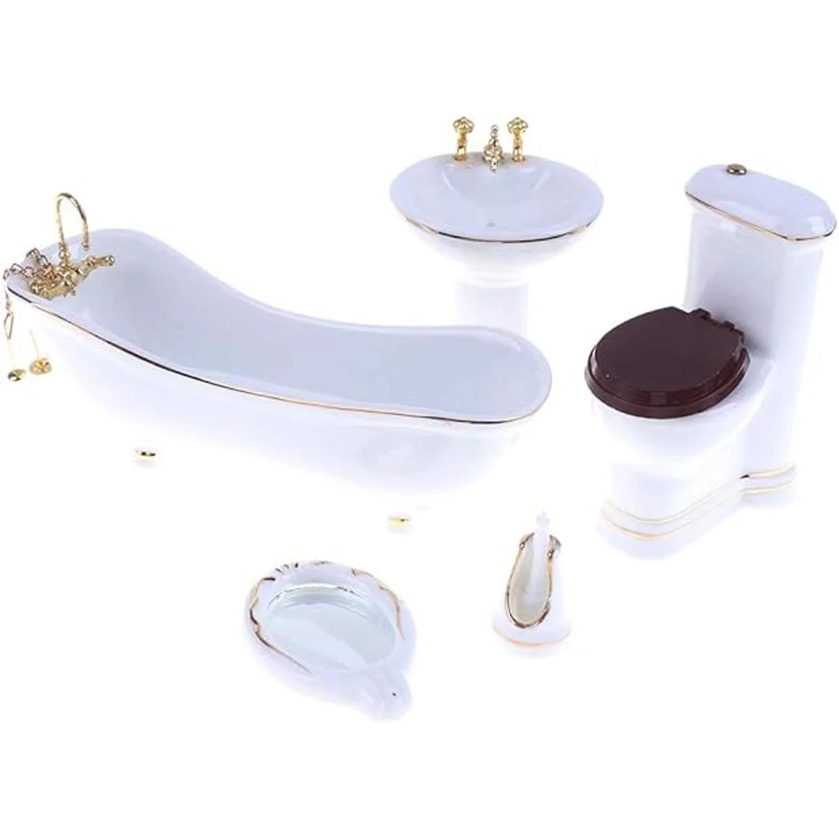 Juego de baño de casa de muñecas: este juego de baño de casa de muñecas a escala 1:12 viene con un inodoro de casa de muñecas, bañera de casa de muñecas, espejo de casa de muñecas y un cepillo de inodoro de casa de muñecas; este juego de baño de porcelana y cerámica es perfecto para el baño de tu casa de muñecas.