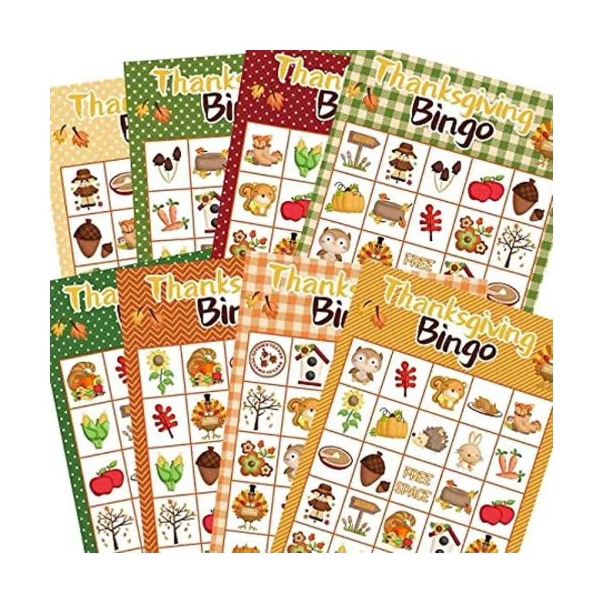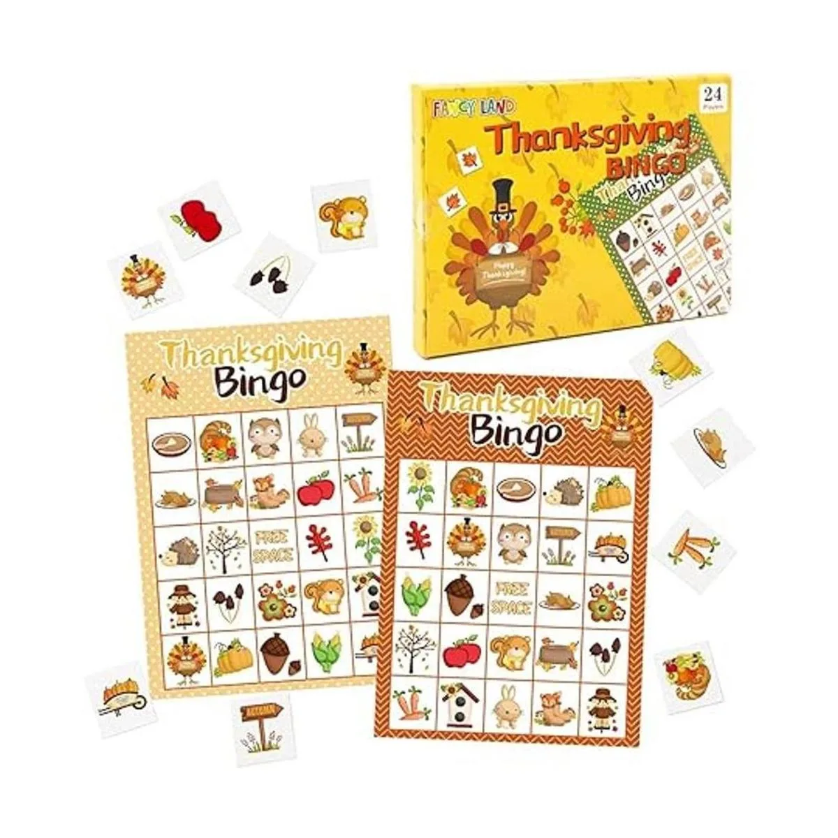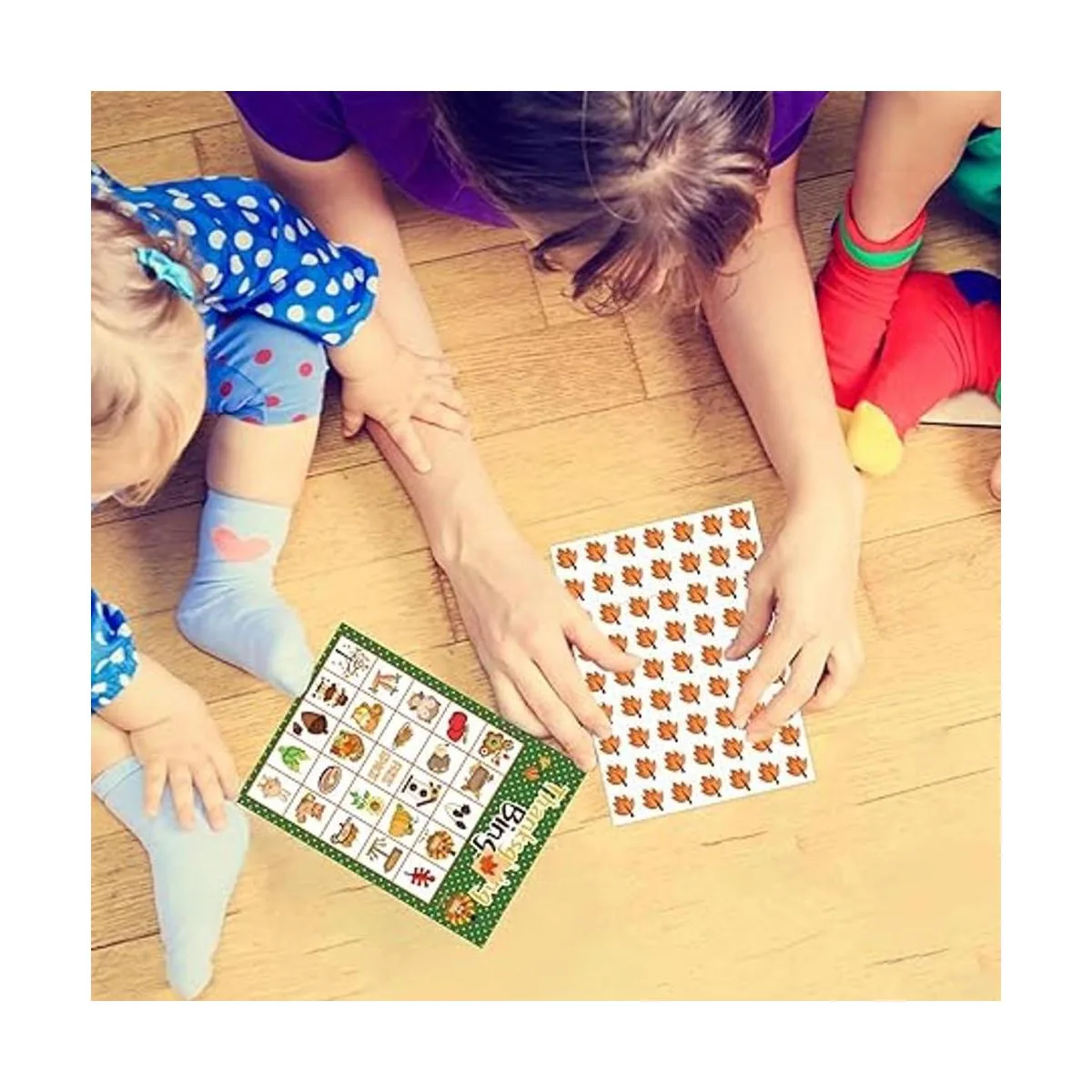 Juego de bingo de Acción de Gracias para niños, 24 jugadores, 8 diseños, multicolor, suministros de juego para fiestas