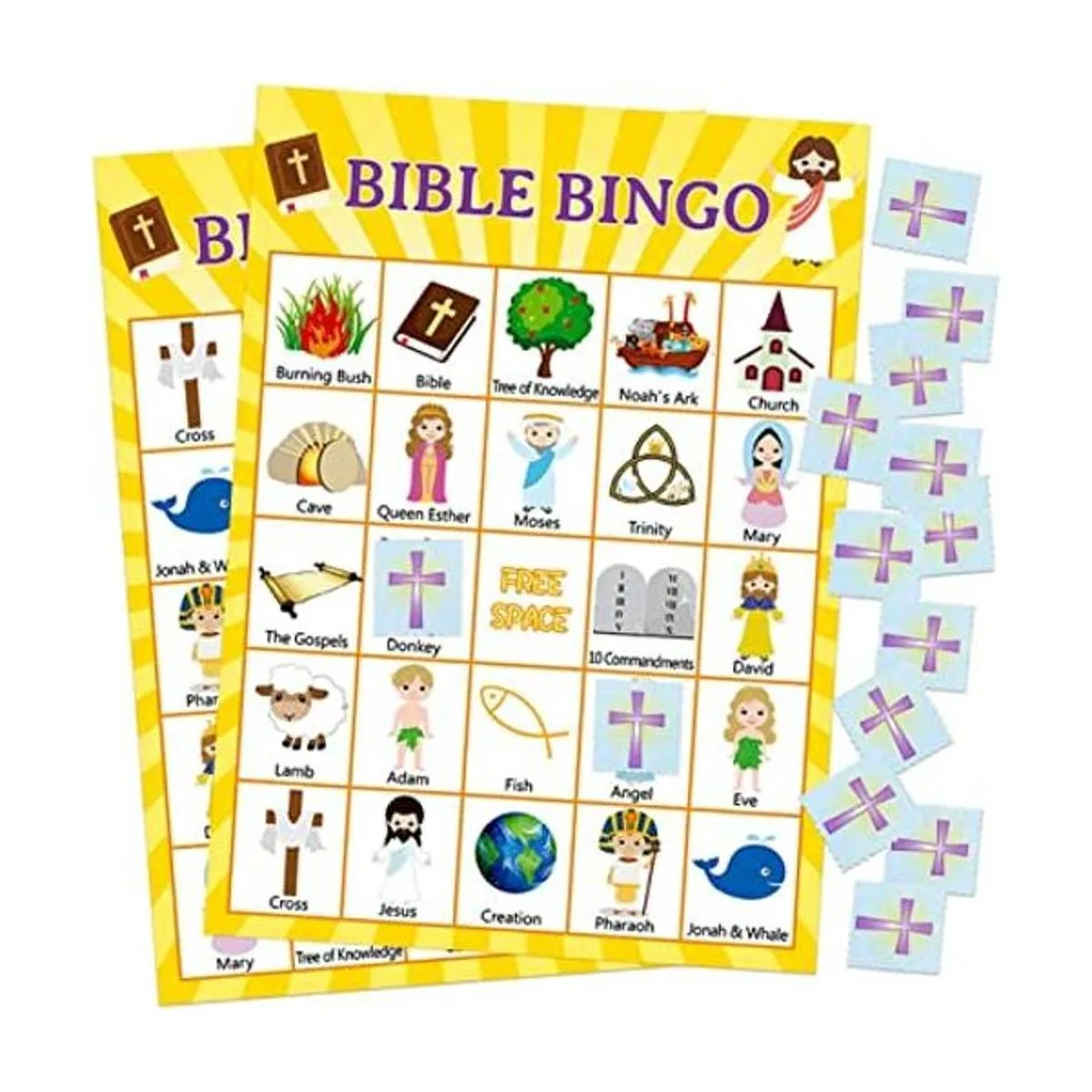Juego de bingo de la Biblia para la escuela de la Biblia de vacaciones 24 jugadores para los niños cristianos Sunday Church