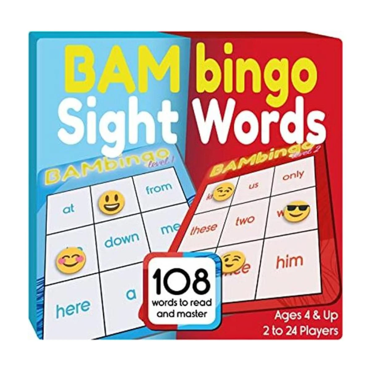 Un regalo ganador para niños y niñas de 4 a 8 años: el juego Blue Level 1 tiene 54 de las palabras más simples comunes para leer para preK y jardín de infantes; el juego Red Level 2 tiene 54 palabras de vista de la lista de palabras Dolch Fry para jardín de infantes y primeros grados