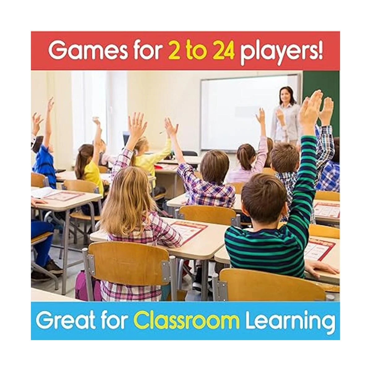 Juega en el aula y en la noche de juego familiar: de 2 a 24 jugadores; se puede jugar 1 a 1, en grupos grandes o como una clase entera; súper fácil de usar y jugar de forma independiente, a los niños les encanta llamar las palabras y están ansiosos por ganar y gritar bingo