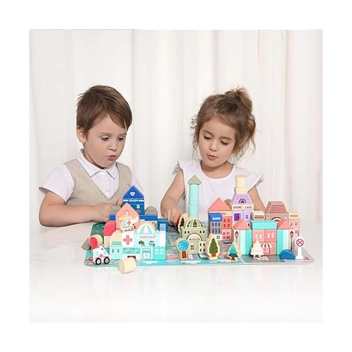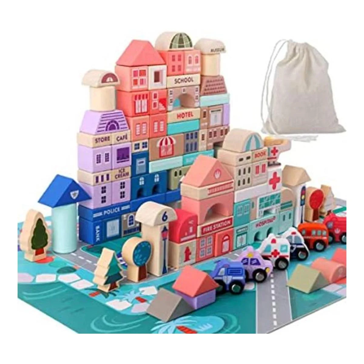 Juego de bloques de construcción de madera, apilador de construcción de ciudad, juguetes educativos de aprendizaje preescolar, juguetes para niños y niñas de 3 años más.