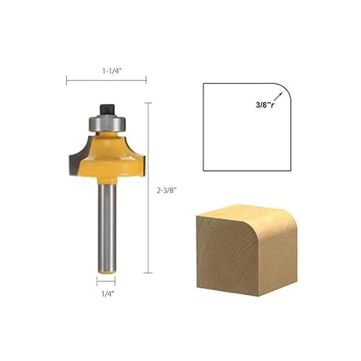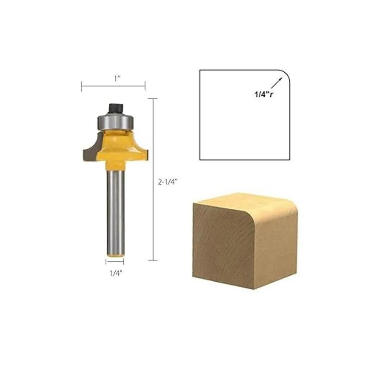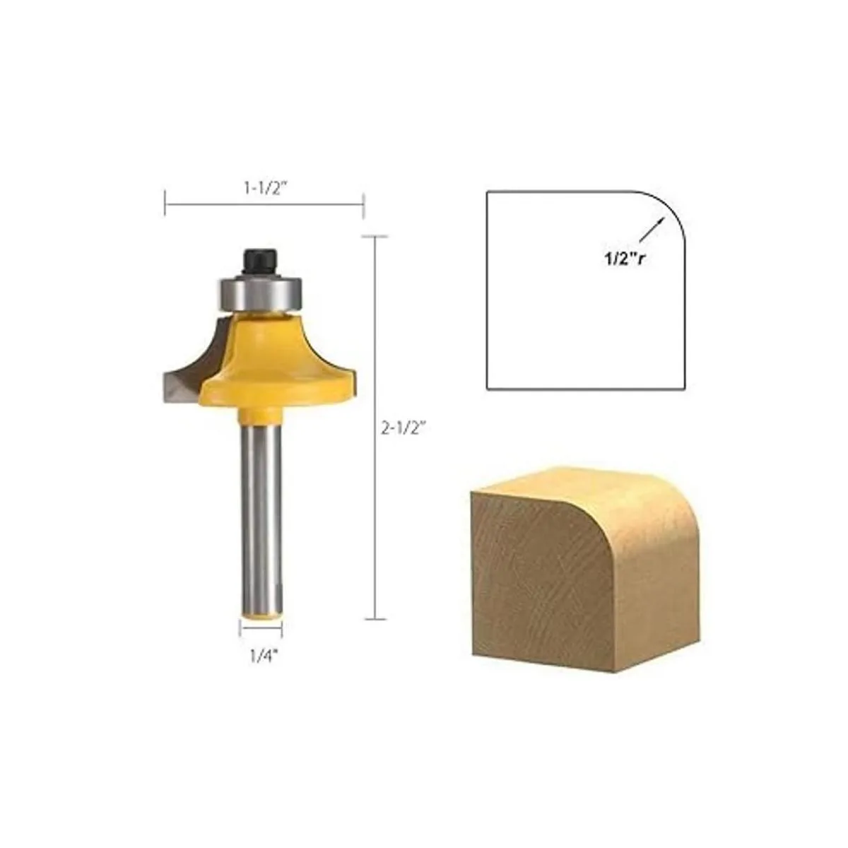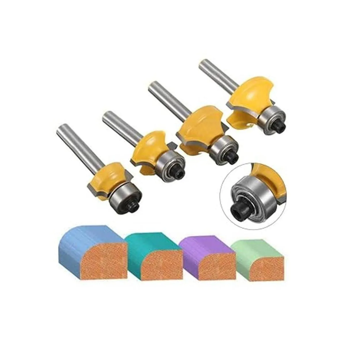 El paquete incluye: juego de 4 brocas de 1/4 pulgadas con vástago versátil redondo sobre bordes, 1/2 pulgadas, 3/8 pulgadas, 1/4 pulgadas, 1/8 pulgadas de radio