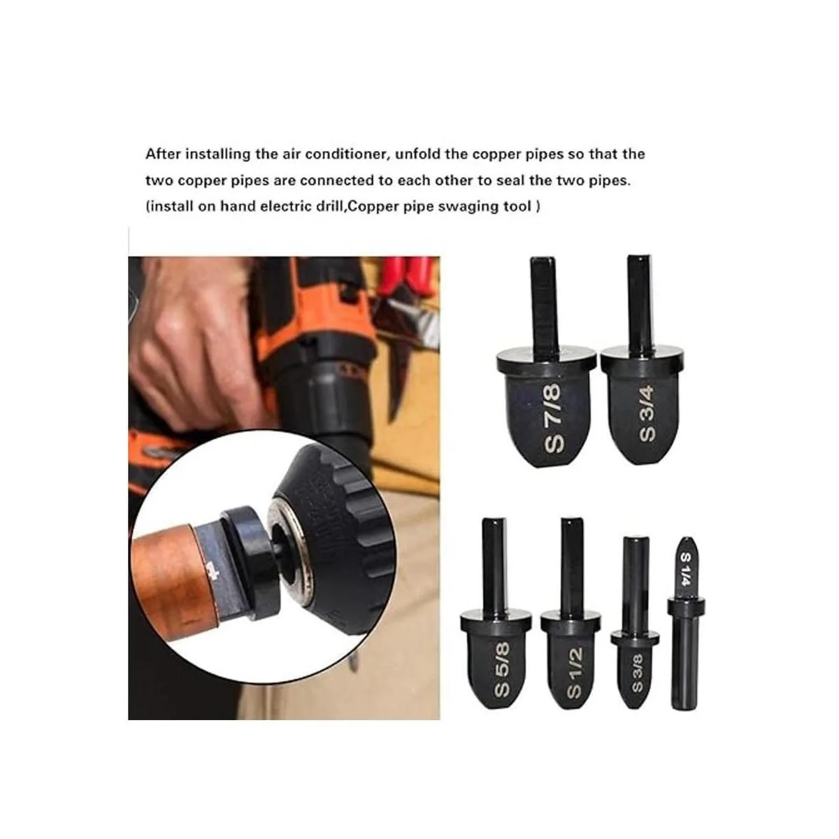 Uso: instalación de aire acondicionado, tubo de cobre abierto, para que dos tubos de cobre se enlacen mutuamente. Para ser instalado en taladro eléctrico manual