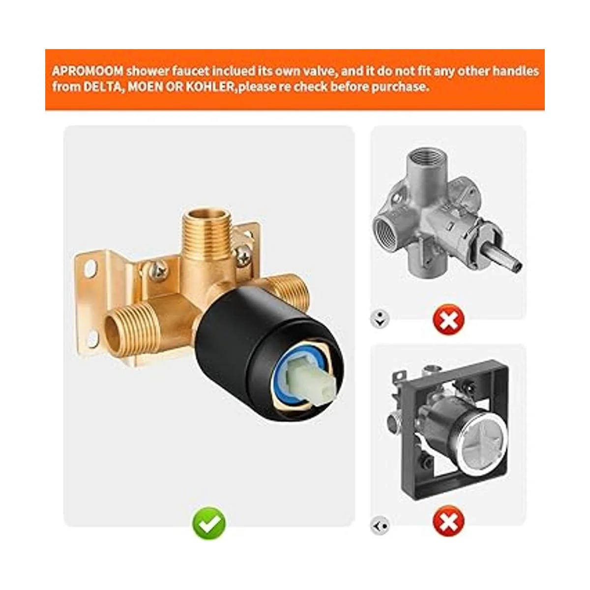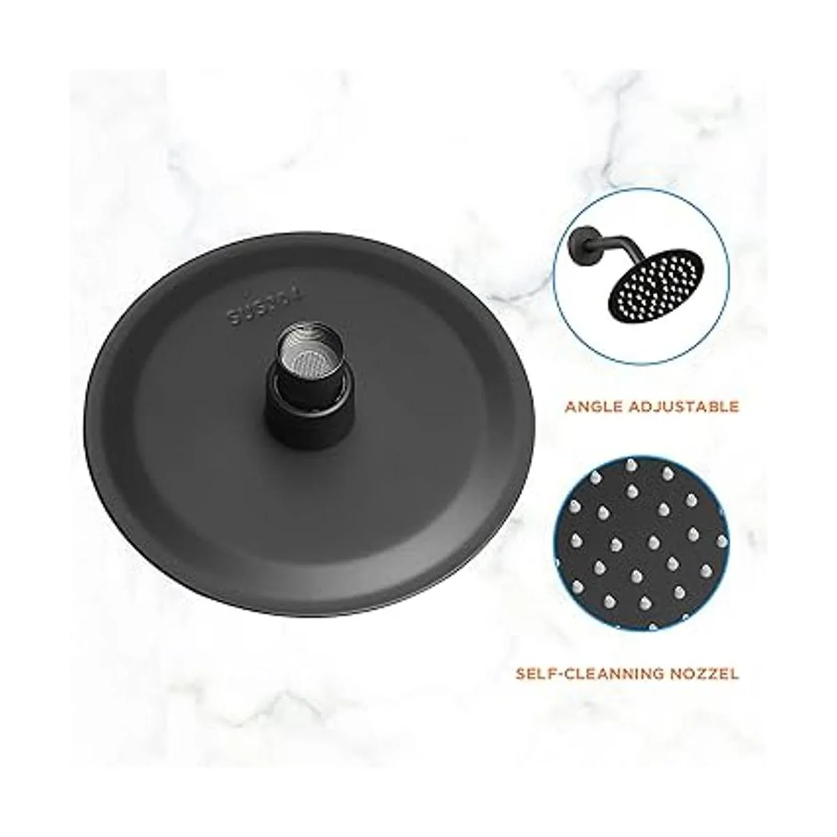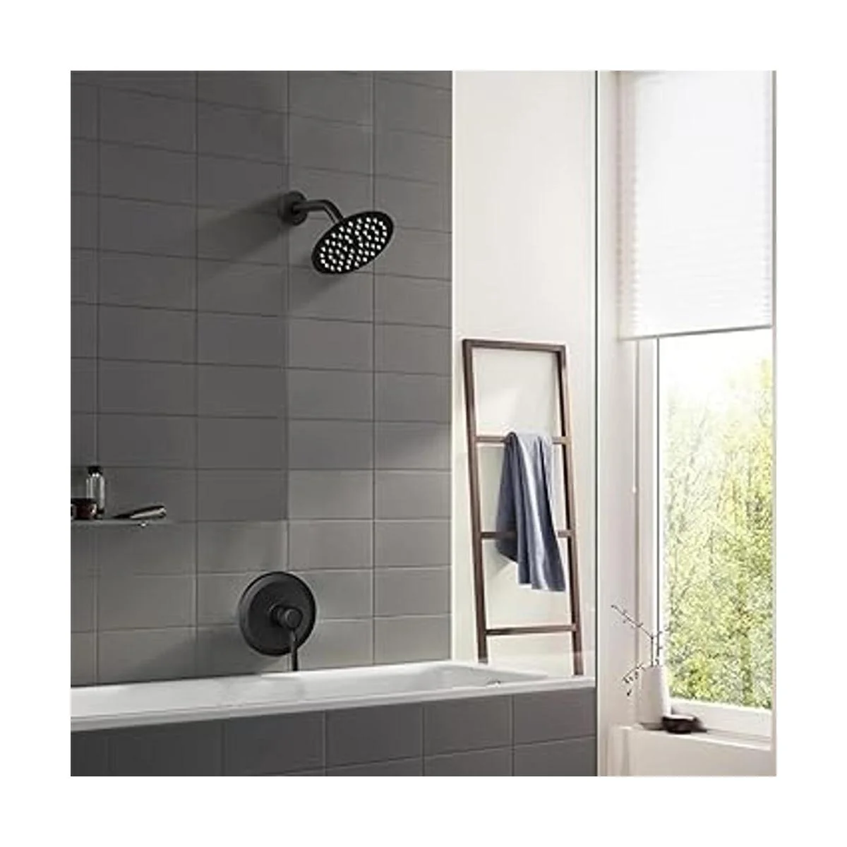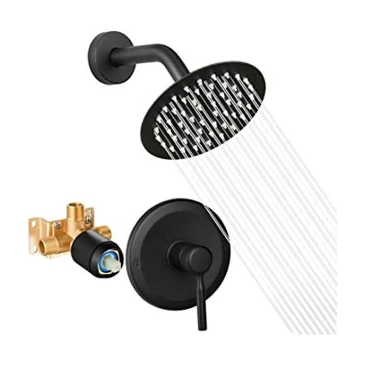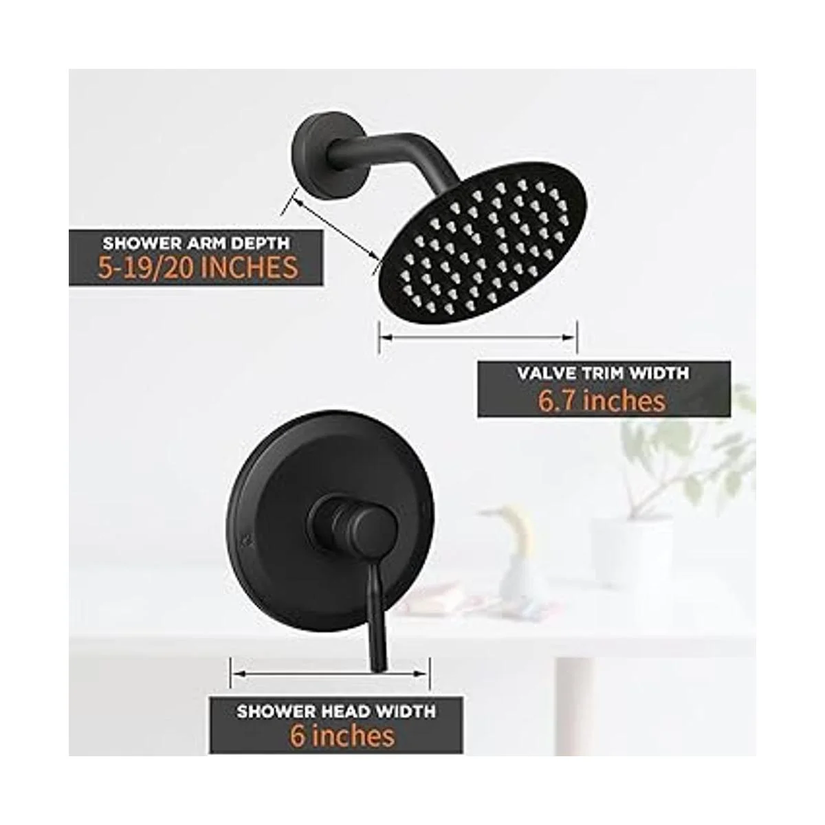 Juego de cabezal de ducha y mango negro: cabezal de ducha de acero inoxidable de 6 pulgadas y mango de palanca única para facilitar los accesorios de ducha de control de temperatura.