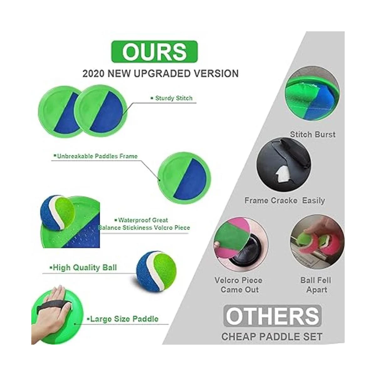 Paleta de alta calidad mejorada: nuestra paleta es nueva actualizada. Tiene 8.1 pulgadas de diámetro, que es más grande que la versión antigua. La pieza de velcro se encuentra muy ajustada contra la superficie de la paleta y la puntada central de la pieza de velcro está reforzada y nunca se perderá ni se saldrá del marco como otros guantes de paleta de mala calidad. El marco de la paleta también está reforzado con un proceso especial y nunca se romperá. Nuestro resistente juego de captura de bolas está diseñado para durar mucho tiempo