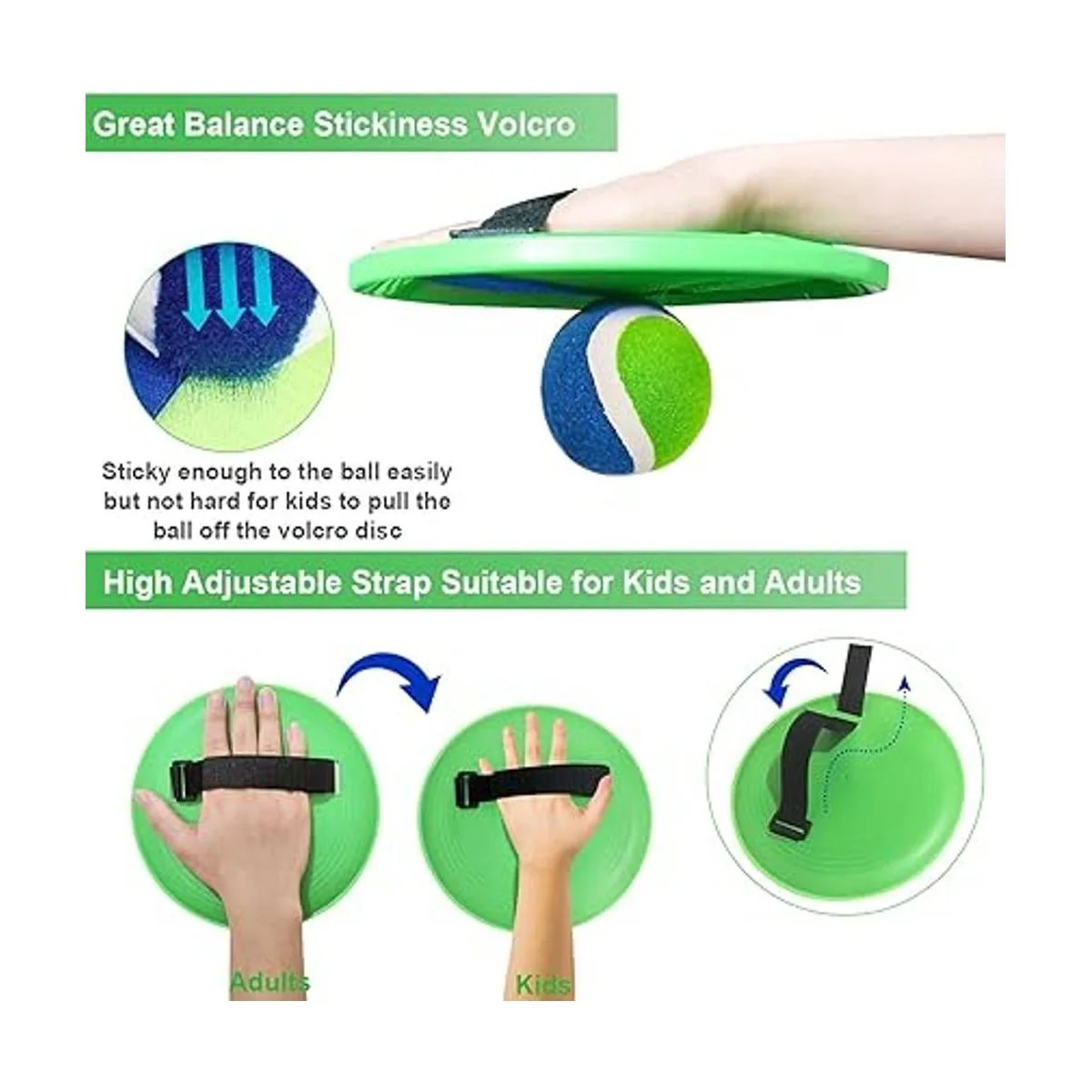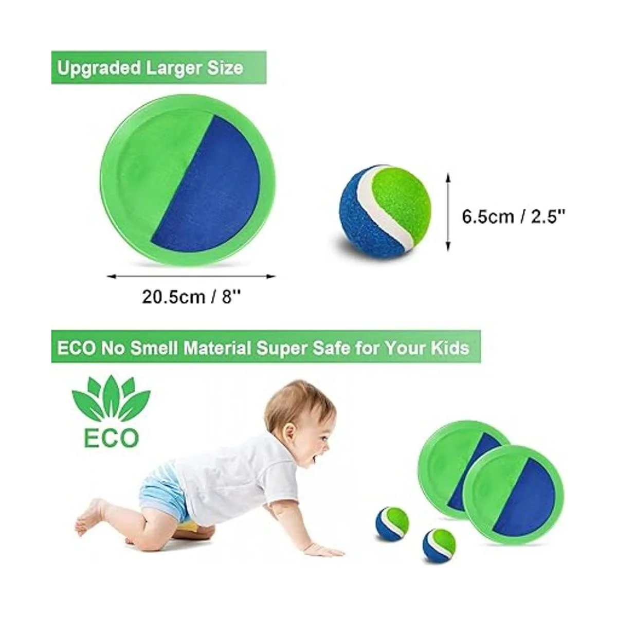 Gran equilibrio de adhesión: la pieza velcro de la paleta es lo suficientemente adherente como para atrapar la bola fácilmente. Pero no es difícil para tus niños pequeños saquen la bola del disco de velcro. Este juego de lanzamiento de captura está hecho de polietileno respetuoso con el medio ambiente, sin olor, súper seguro para tus hijos