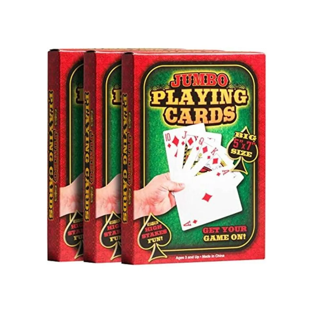 Juego de cartas gigantes de 5 x 7 pulgadas, paquete de 3 barajas de índice de póquer jumbo para juegos temáticos de casino, suministros de noche y fiesta mágica, rellenos de calcetines