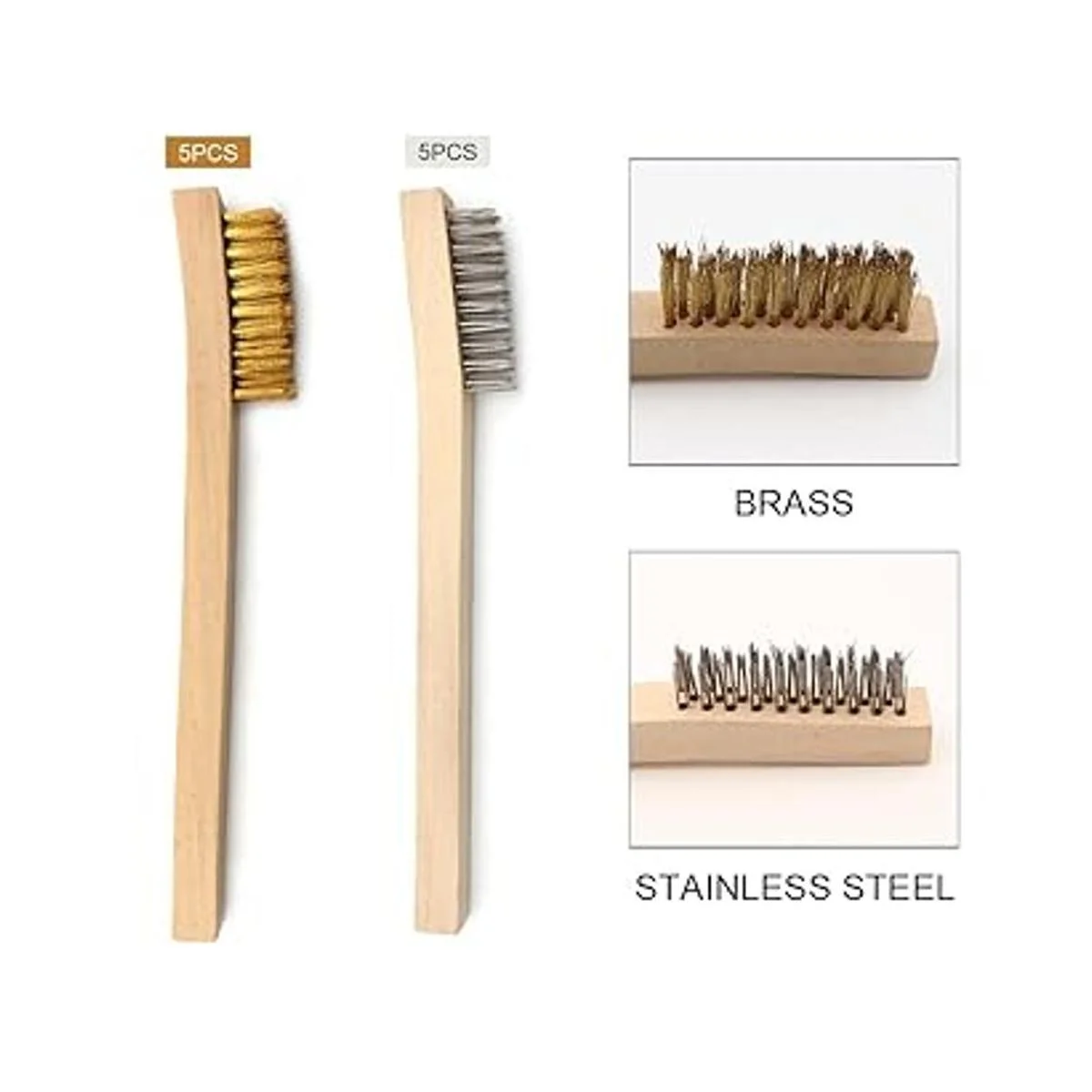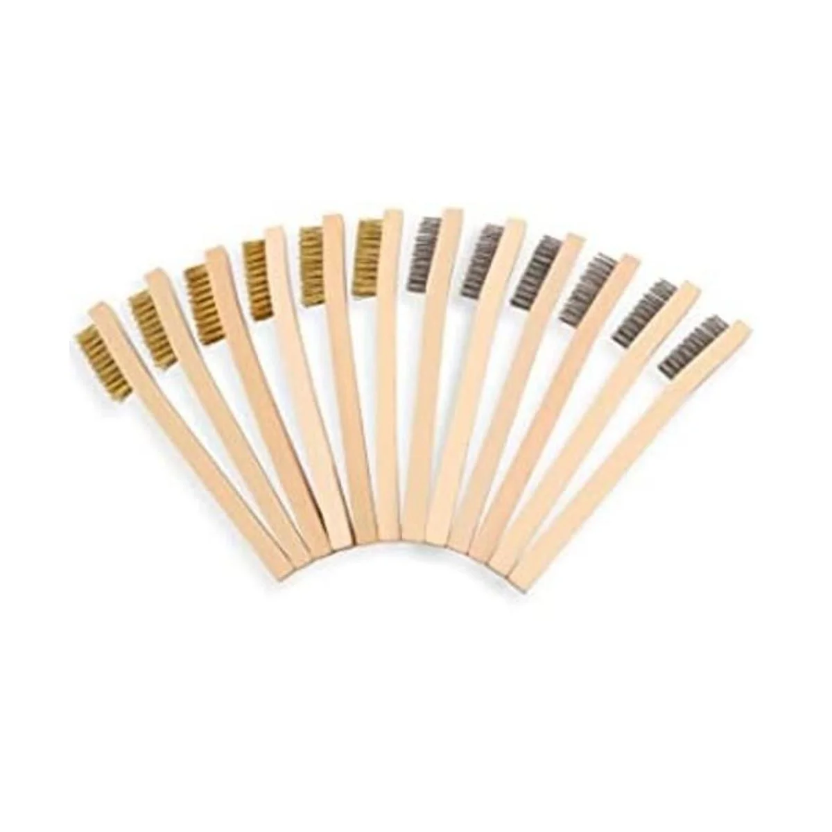 Juego de cepillos de alambre,Cepillo de rayado de alambre de limpieza detallado,Latón,Nylon,Cerdas de acero inoxidable con mango de madera,Pequeño,12 piezas