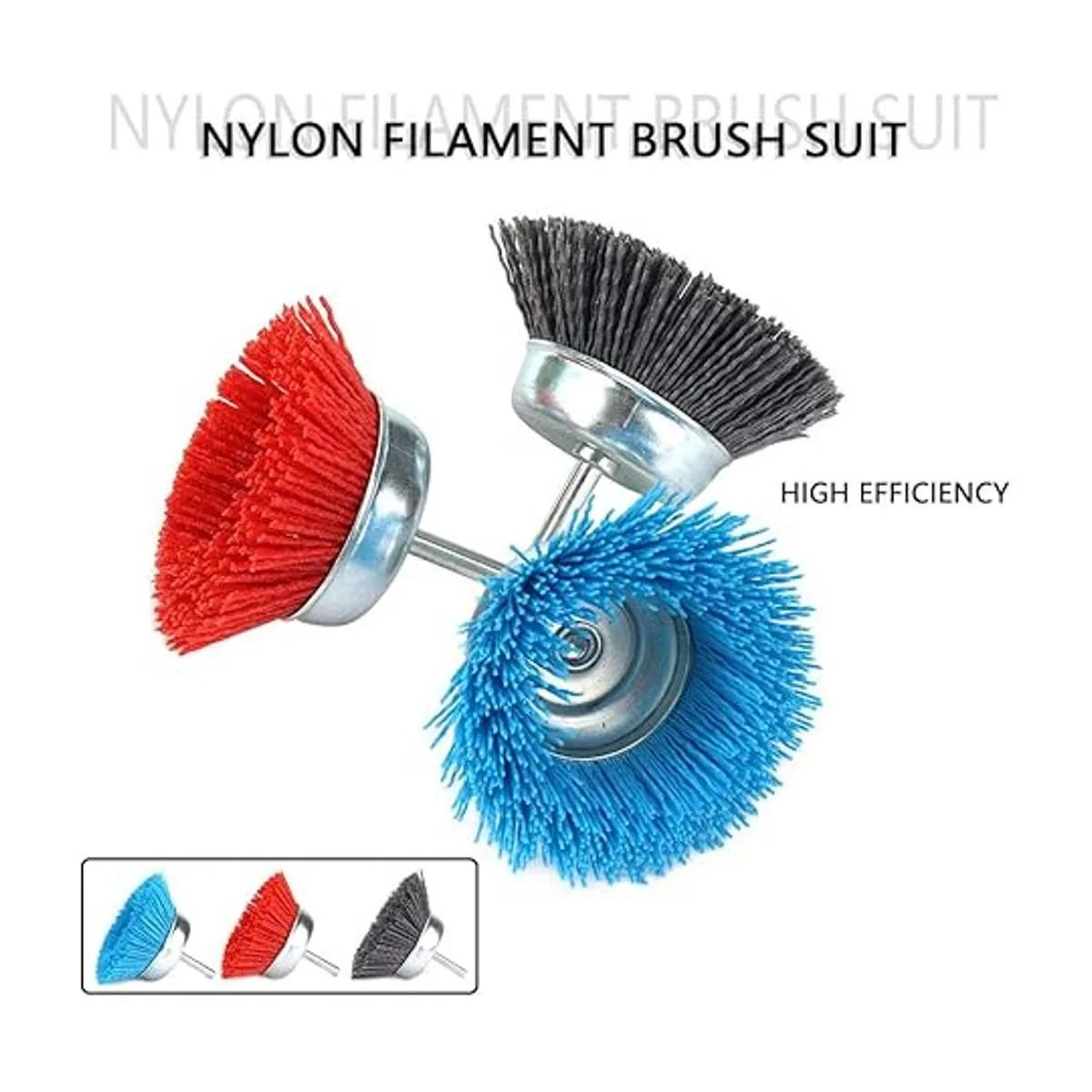 Ampliamente utilizado: cepillos de nailon con vástago de 0.2 in que se adaptan a la mayoría de taladros, pueden soportar una velocidad ultra ancha de 4500 RMP.