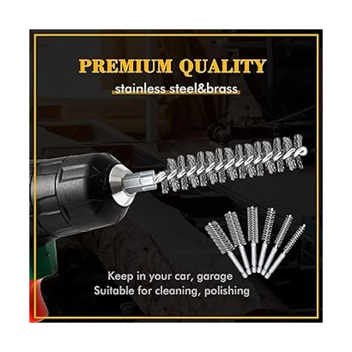 Múltiples usos: puedes mantener los cepillos de calibre de alambre en tu coche, garaje, oficina y cocina, y los cepillos de orificio son adecuados para limpiar, pulir, pintar o eliminar el óxido en aplicaciones automotrices, fabricación, mecanizado y emisión, y muchos otros
