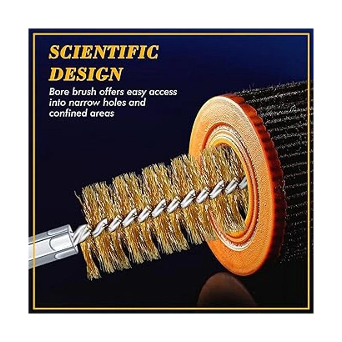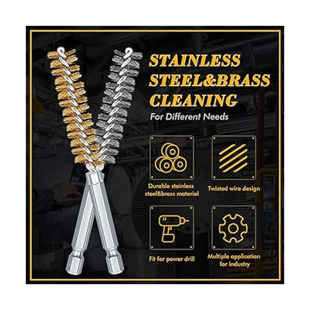 Material de calidad: los cepillos de limpieza de orificios están hechos de acero inoxidable y cobre latón, fuertes y resistentes, pueden limpiar el óxido y los detalles completamente; el alambre trenzado es para una mayor acción de limpieza