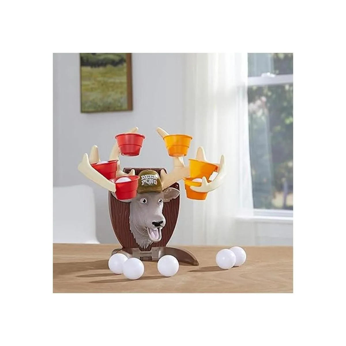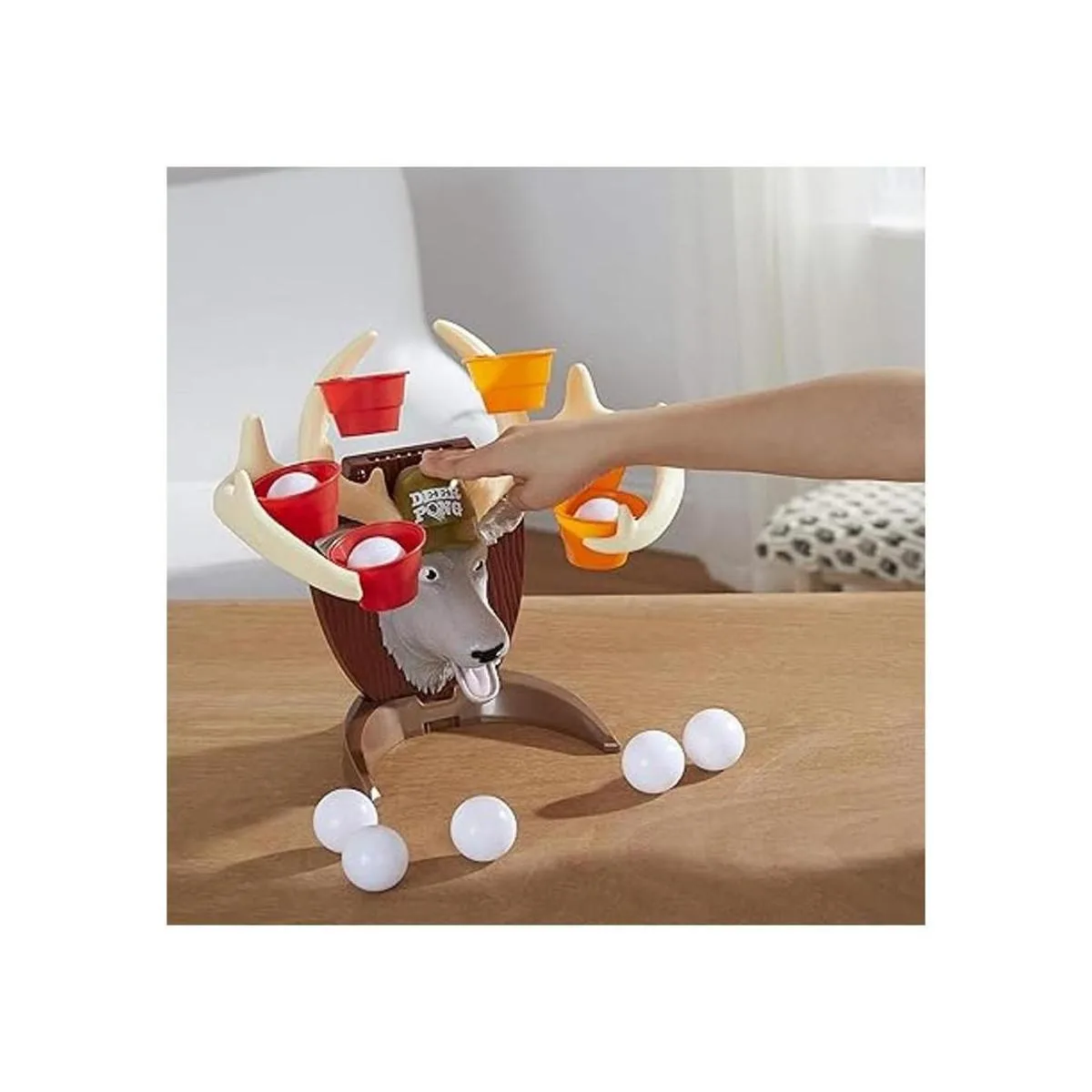 Juego de ciervos para pong, cuenta con cabeza de ciervo y música, incluye 6 tazas de fiesta y 8 bolas, divertido juego familiar para edades de 8 años en adelante