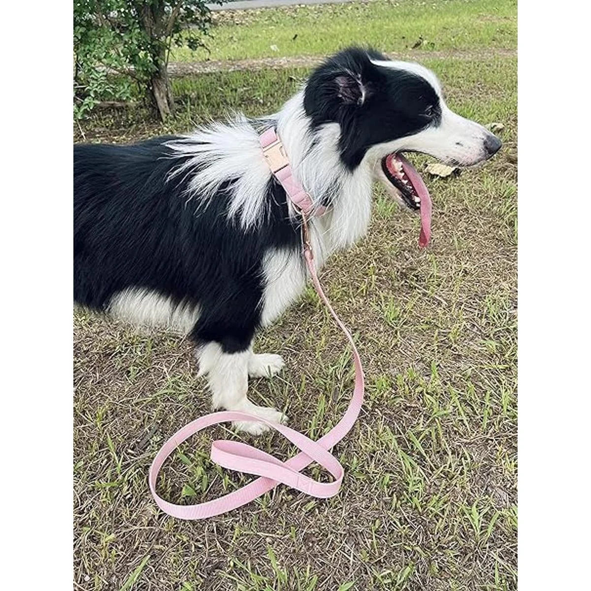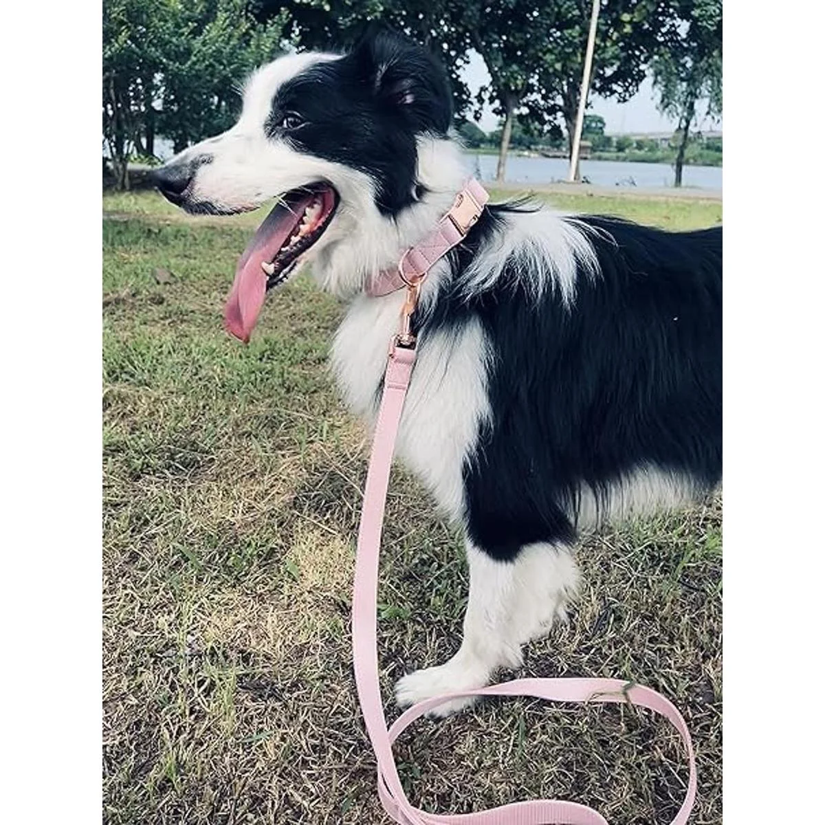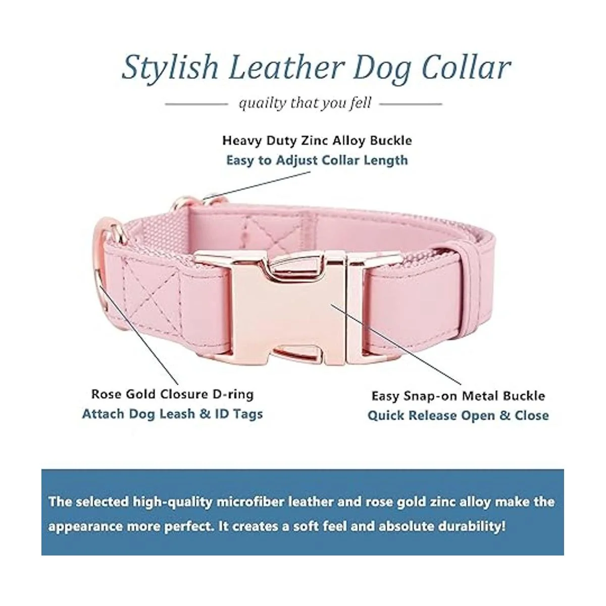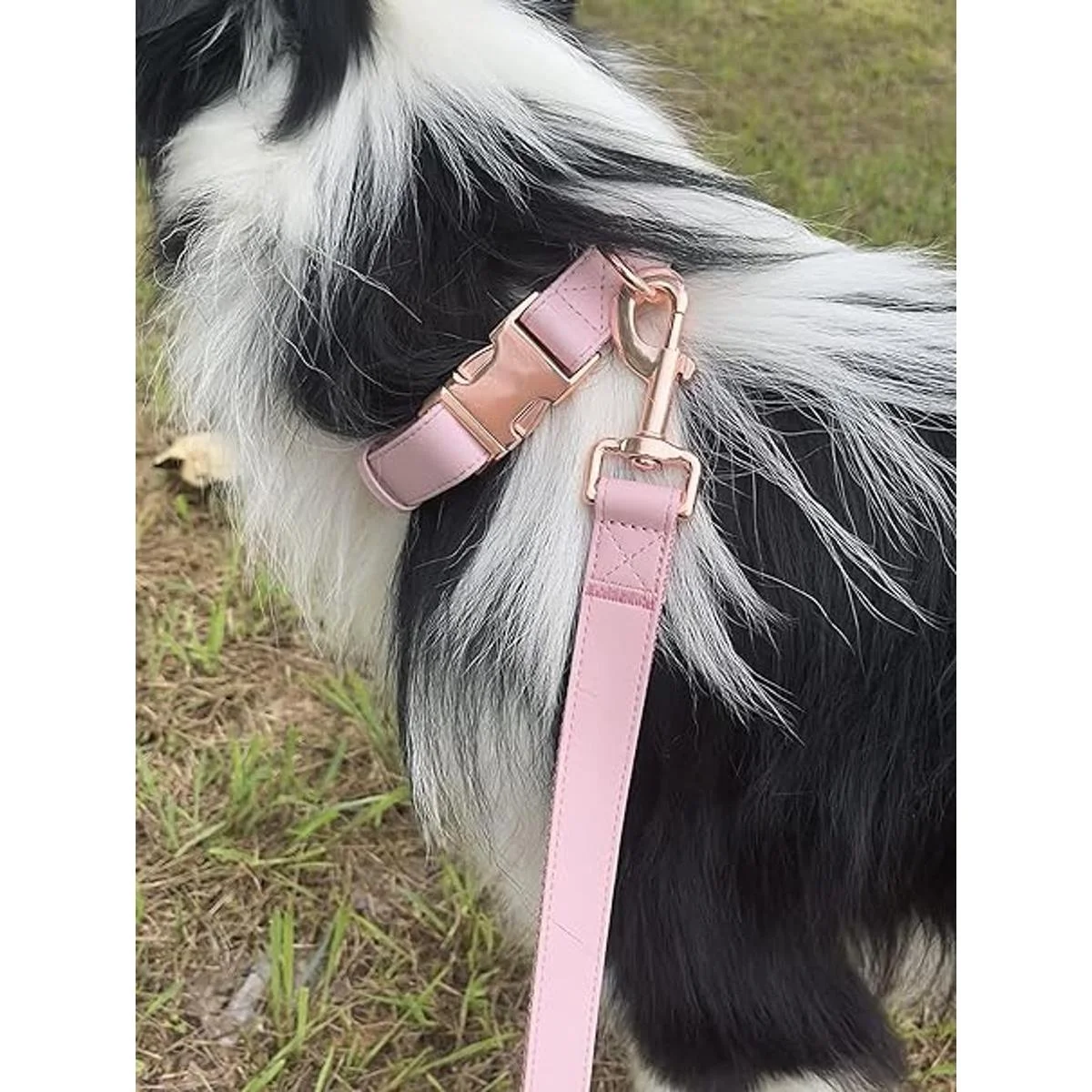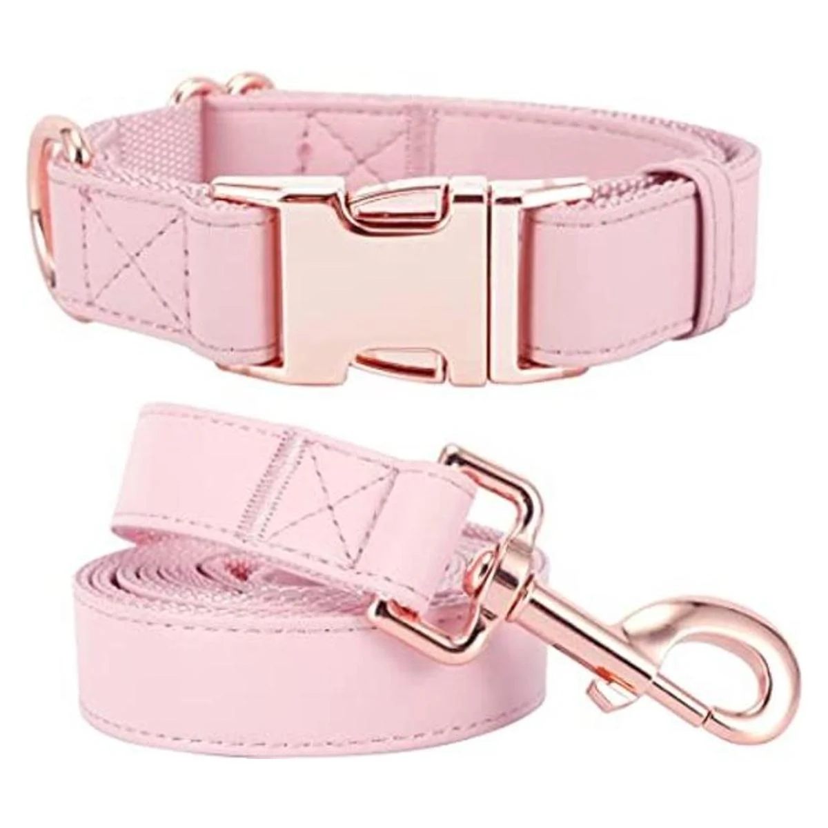Juego de collar y correa para perro. Piel vegana suave y fácil de limpiar, con hebilla de metal oro rosa para perros pequeños, medianos y grandes rosa, S 12.216.9 pulgadas