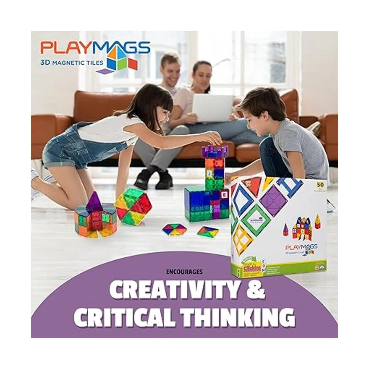 Juego de 50 piezas de azulejos magnéticos: Este juego clásico de Playmags permite que los niños construyan, jueguen y aprendan durante.