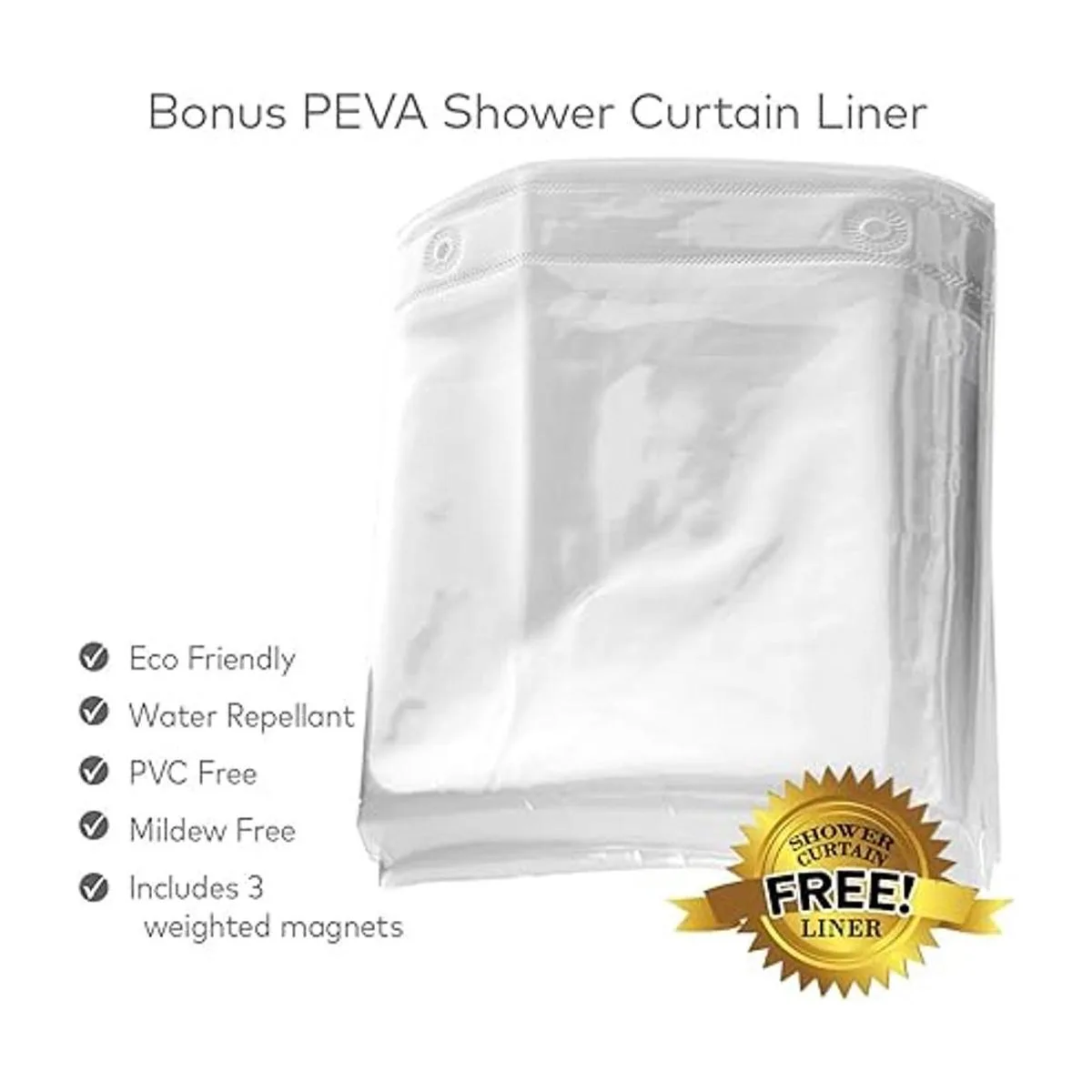 Incluye forro de cortina de ducha ecológico M Free con 3 imanes pesados.