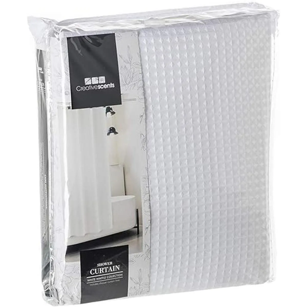 La cortina repelente al agua mide 72 x 72 pulgadas para adaptarse a zonas de ducha y bañera de tamaño estándar.