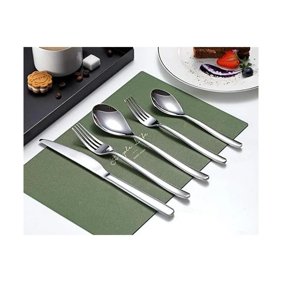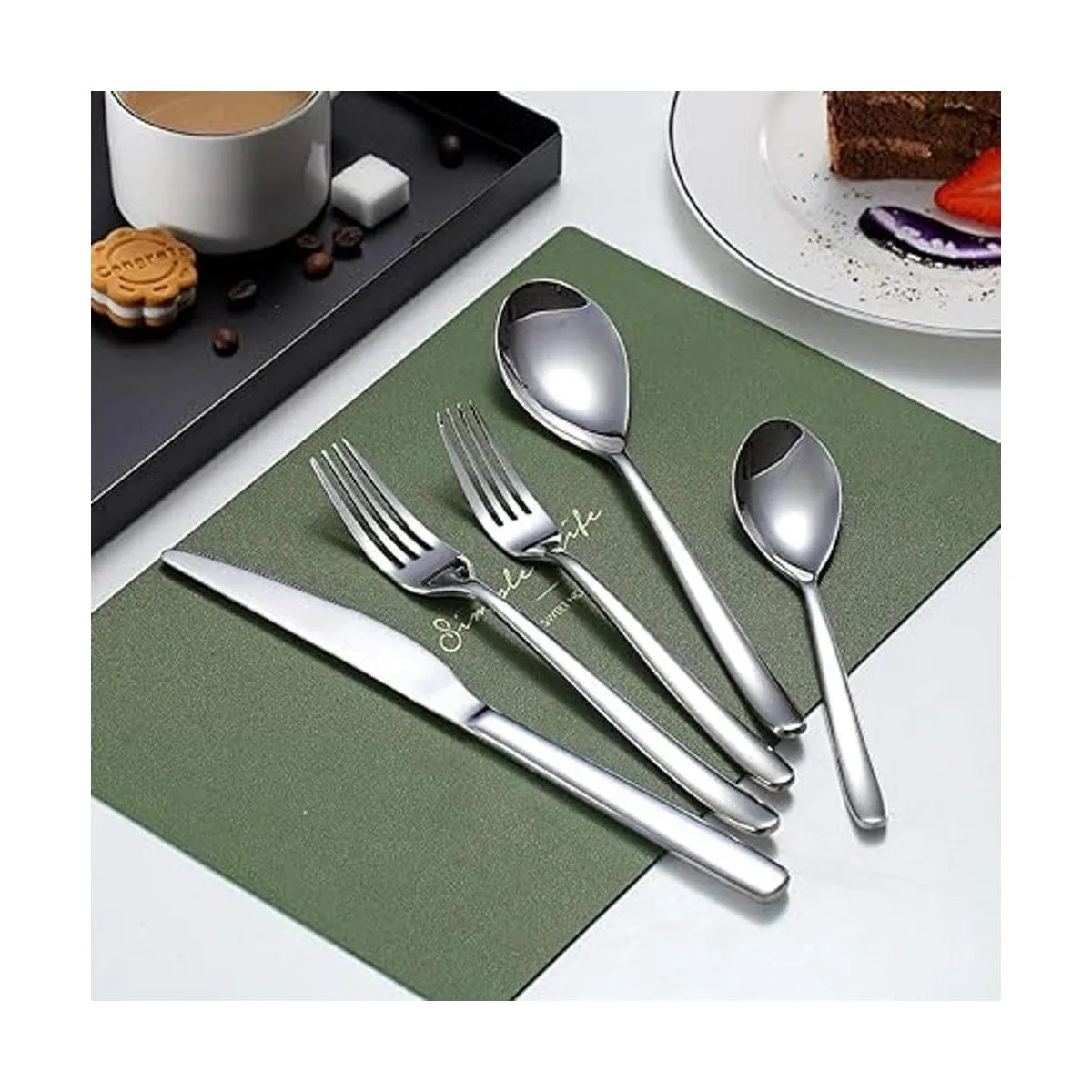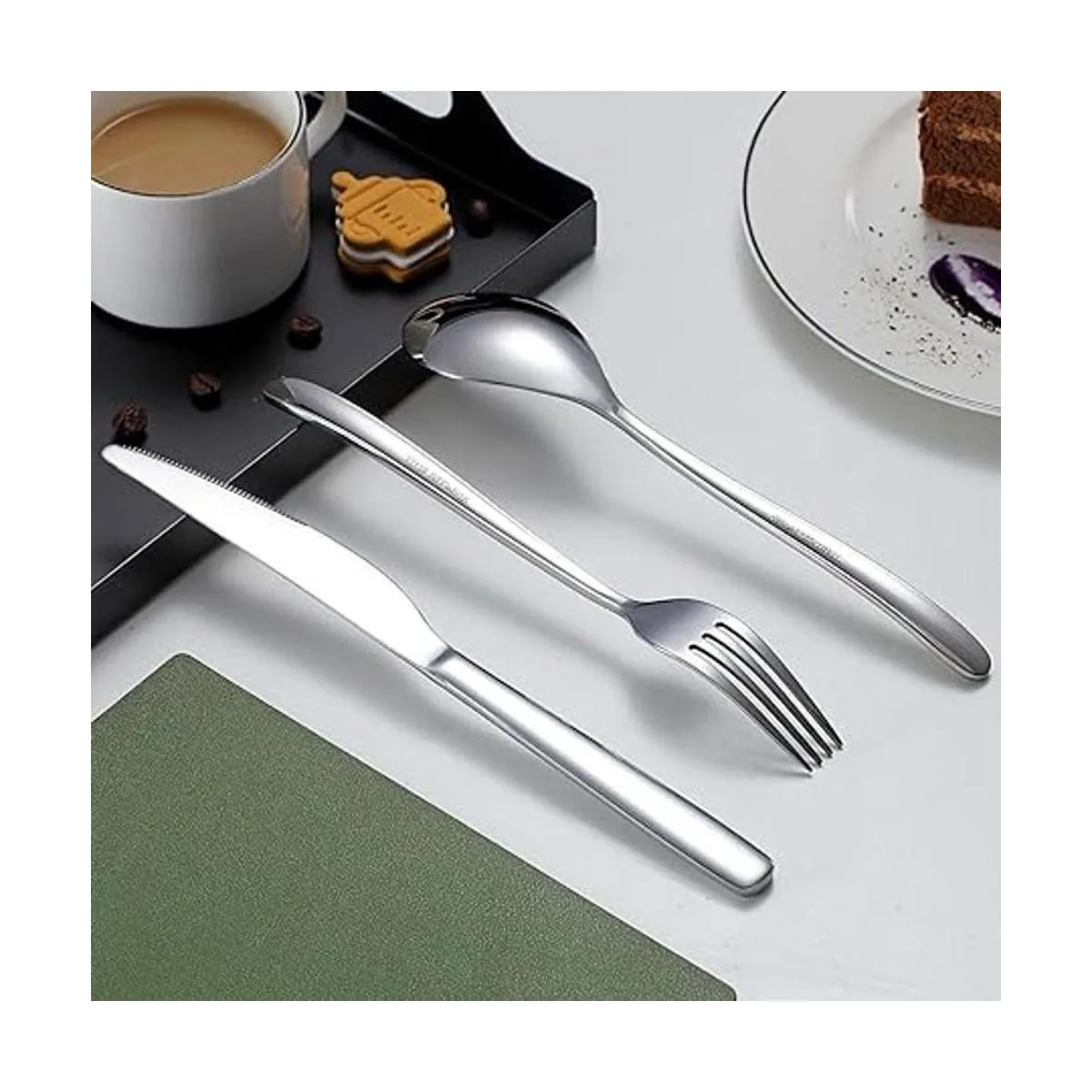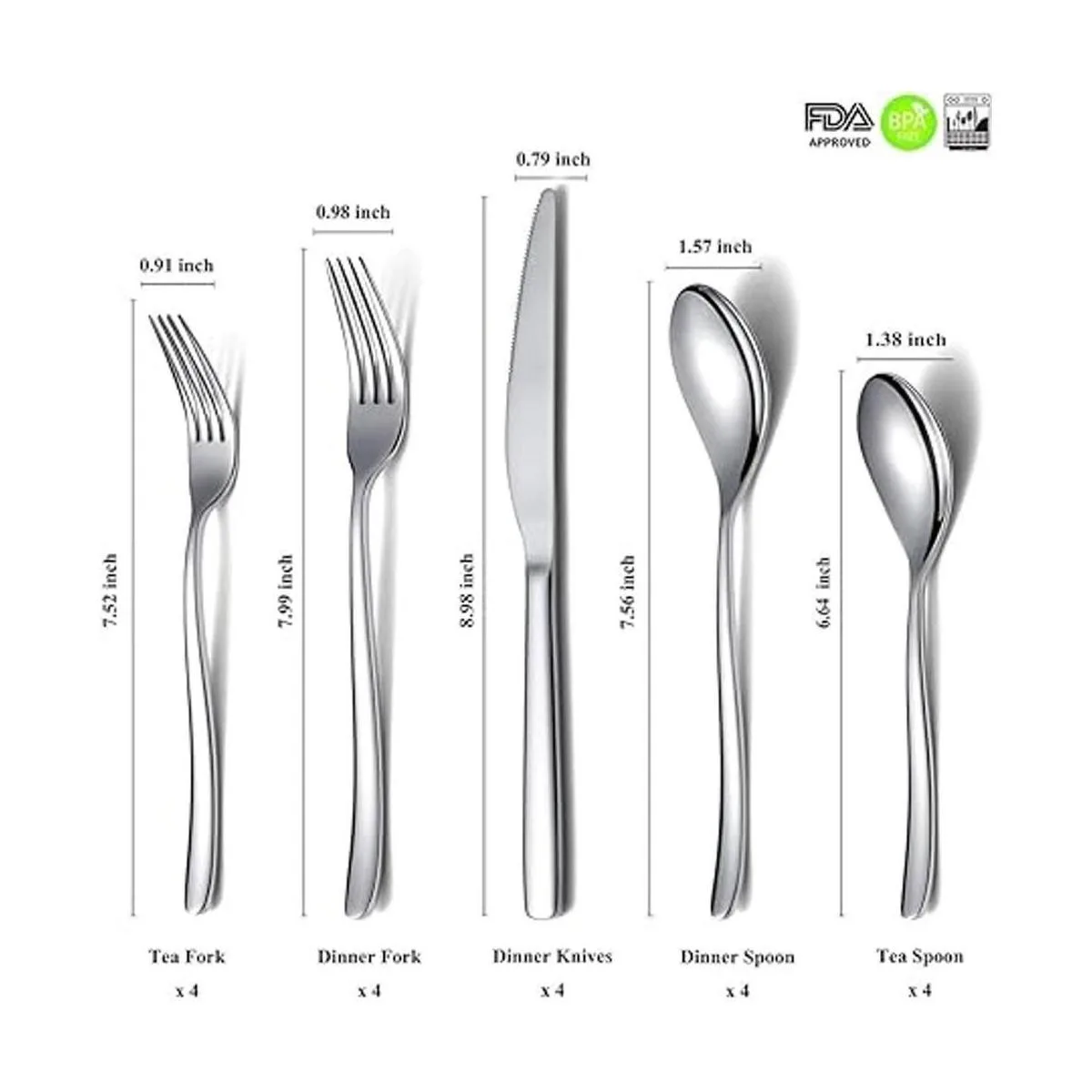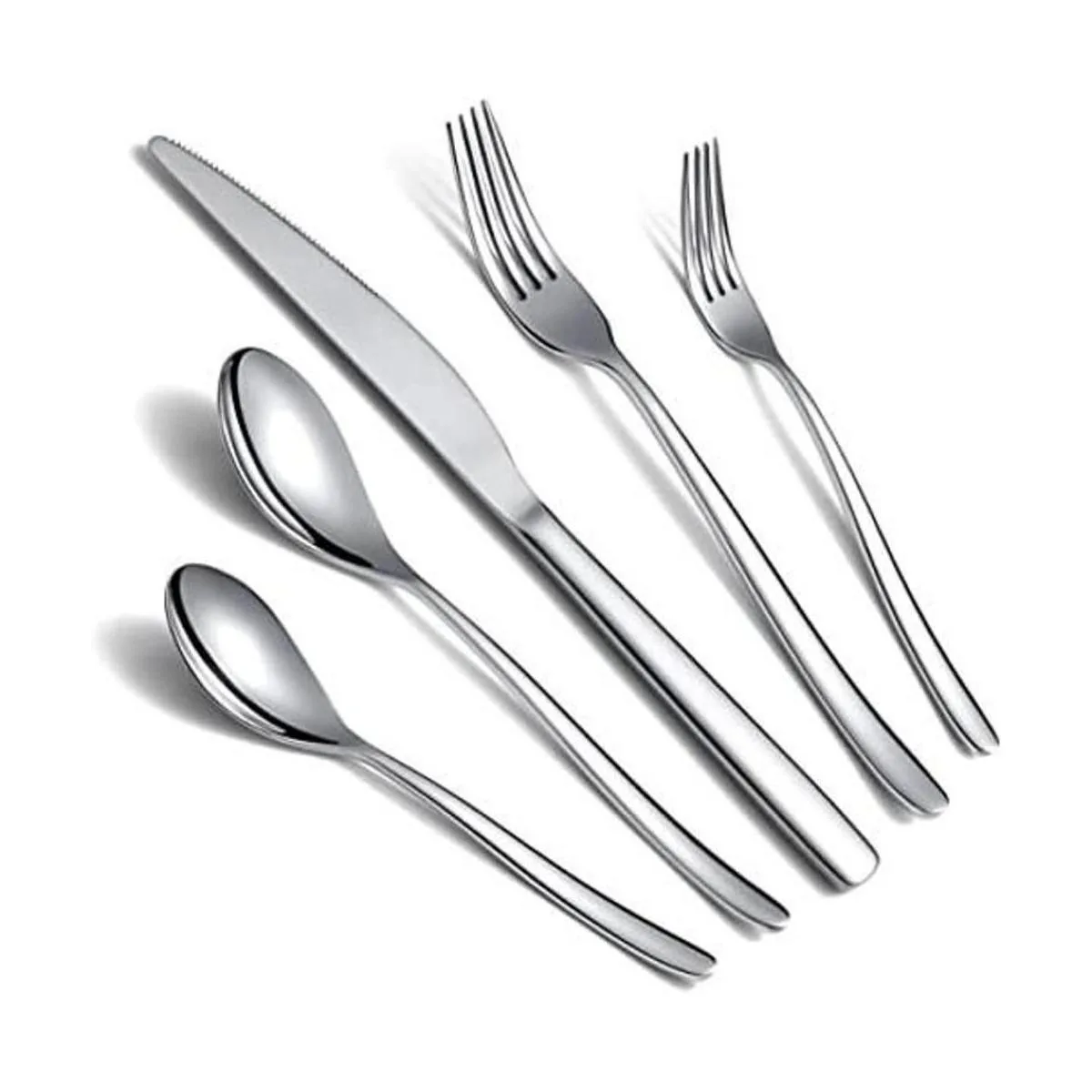 Juego de cubiertos de 20 piezas: incluye 4 cuchillos de cena, 4 tenedores de cena, 4 cucharas de cena, 4 cucharaditas, 4 tenedores de ensalada.
