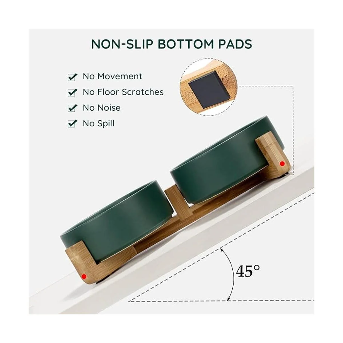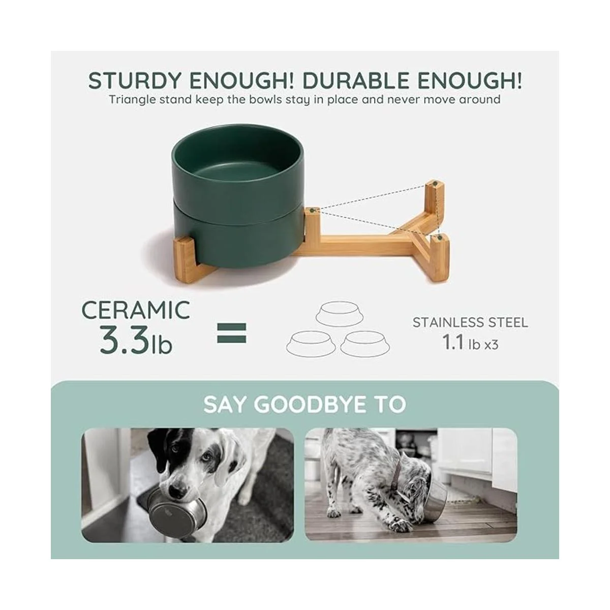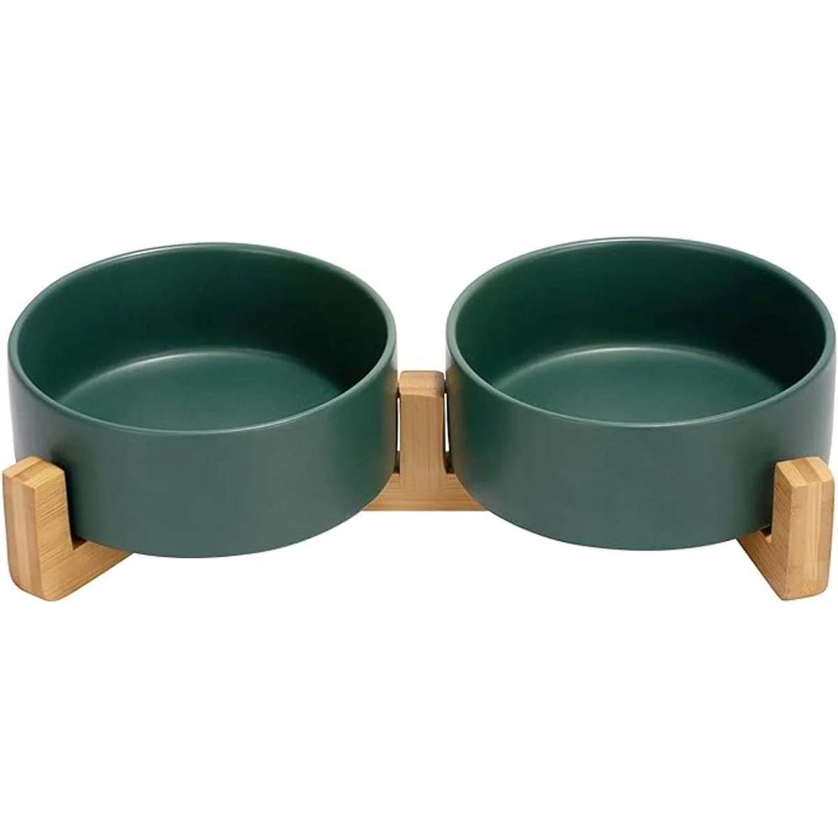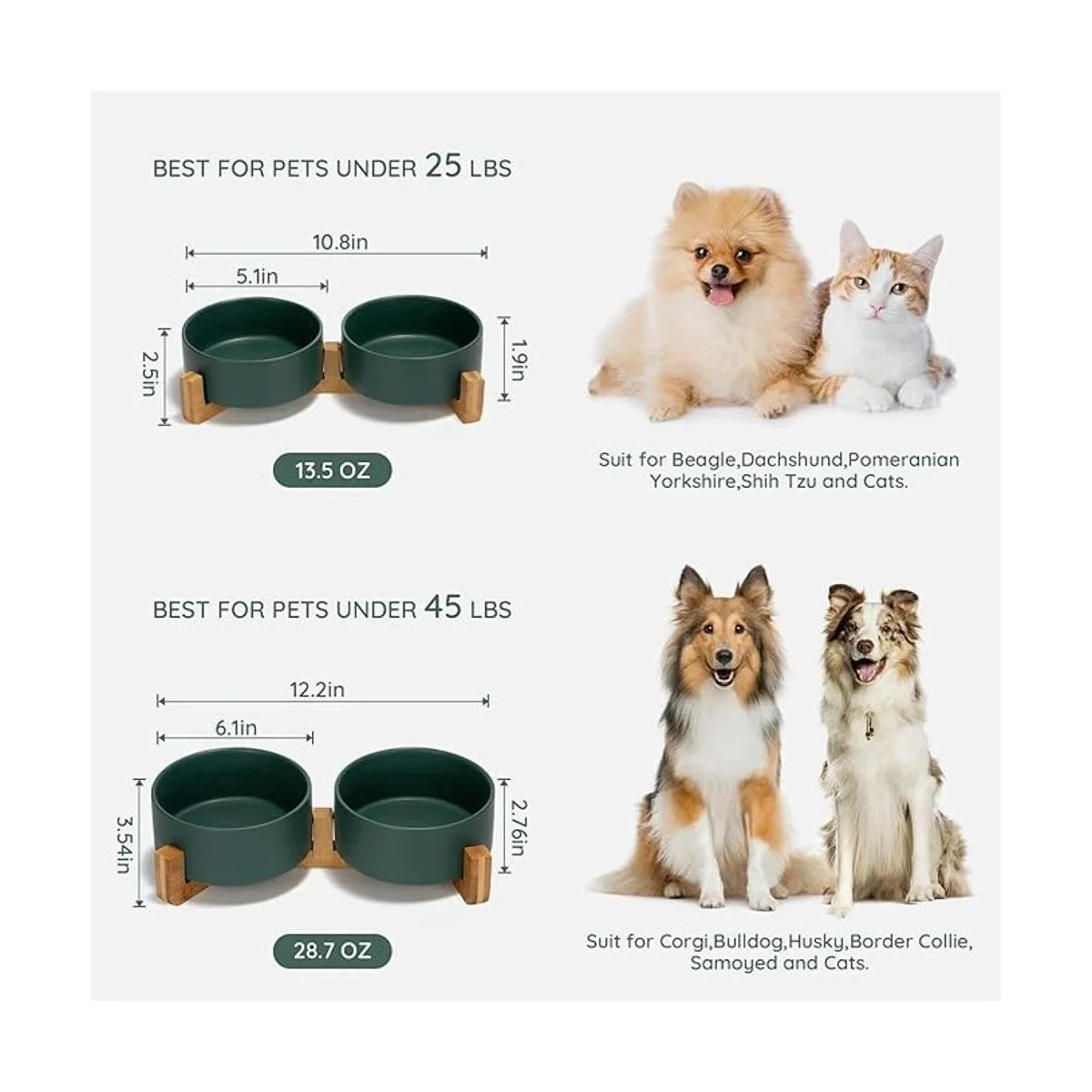 Juego de cuencos de cerámica para perros y gatos con soporte de madera, moderno y bonito juego de agua para alimentos con peso para perros pequeños 13.5 onzas y perros de tamaño mediano 28.7 onzas y gatos