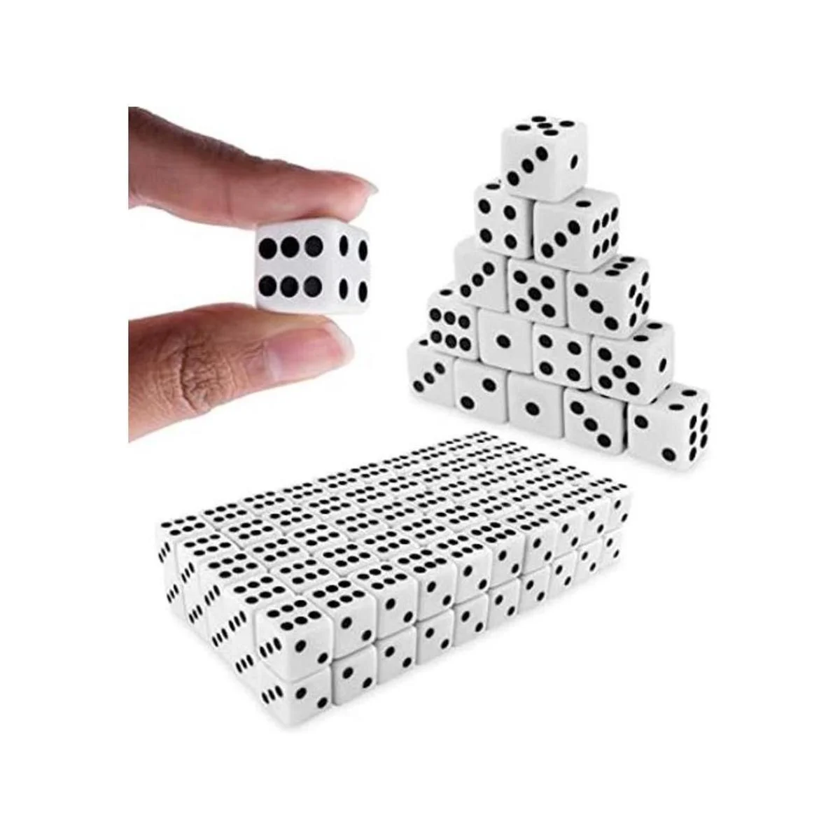 Juego de dados blancos de 0,63 pulgadas con puntos negros, 100 unidades.