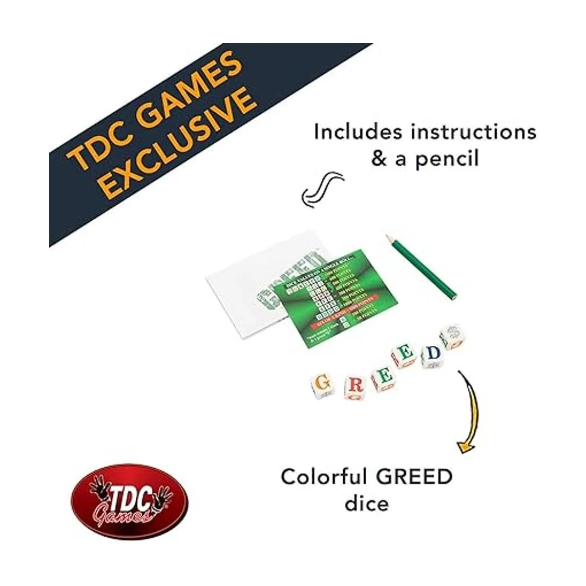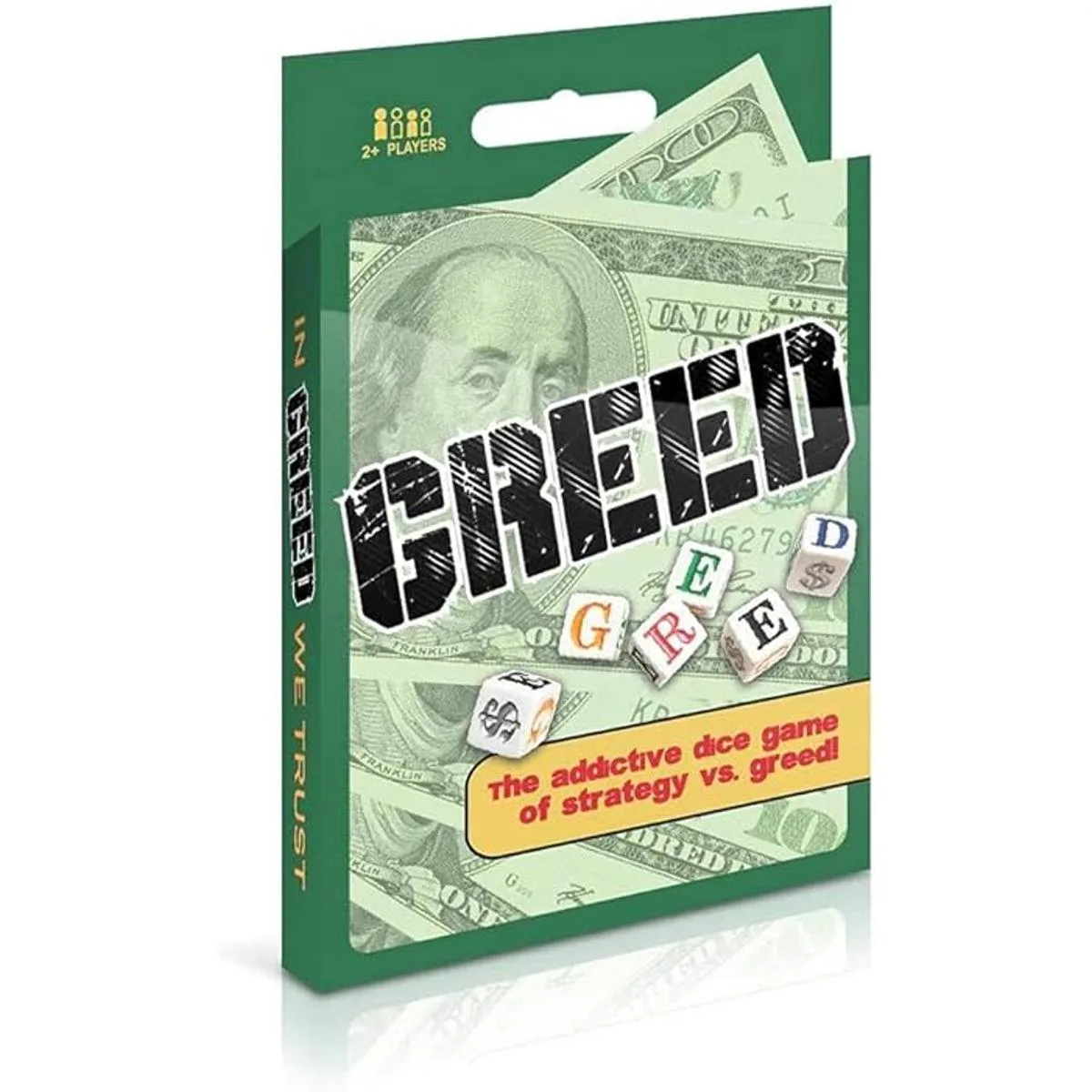 No te enfades: tira los dados de la maleza para apilar puntos, pero ten cuidado. La primera vez que no añadas a su puntuación, todo se pierde. Greed es uno de los juegos de dados más adictivos jamás creados. Desafiado para seguir lanzando los dados para una mejor puntuación, los jugadores deben aprender a detenerse antes de que la avaricia cruda los supere.