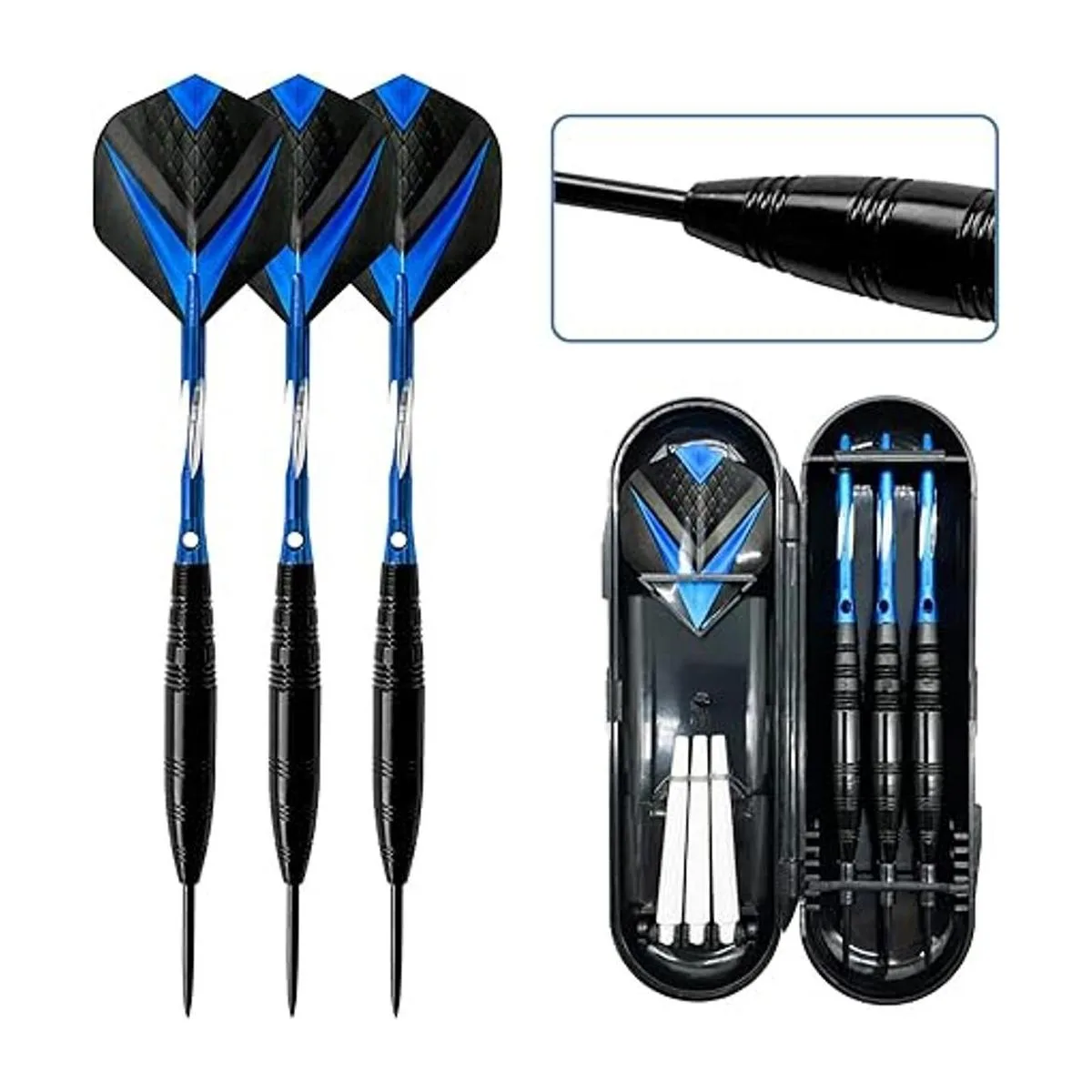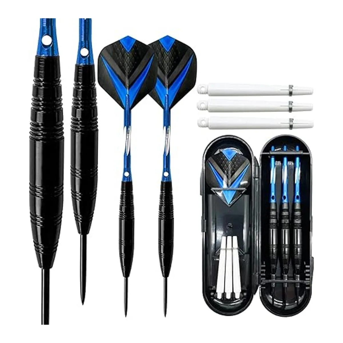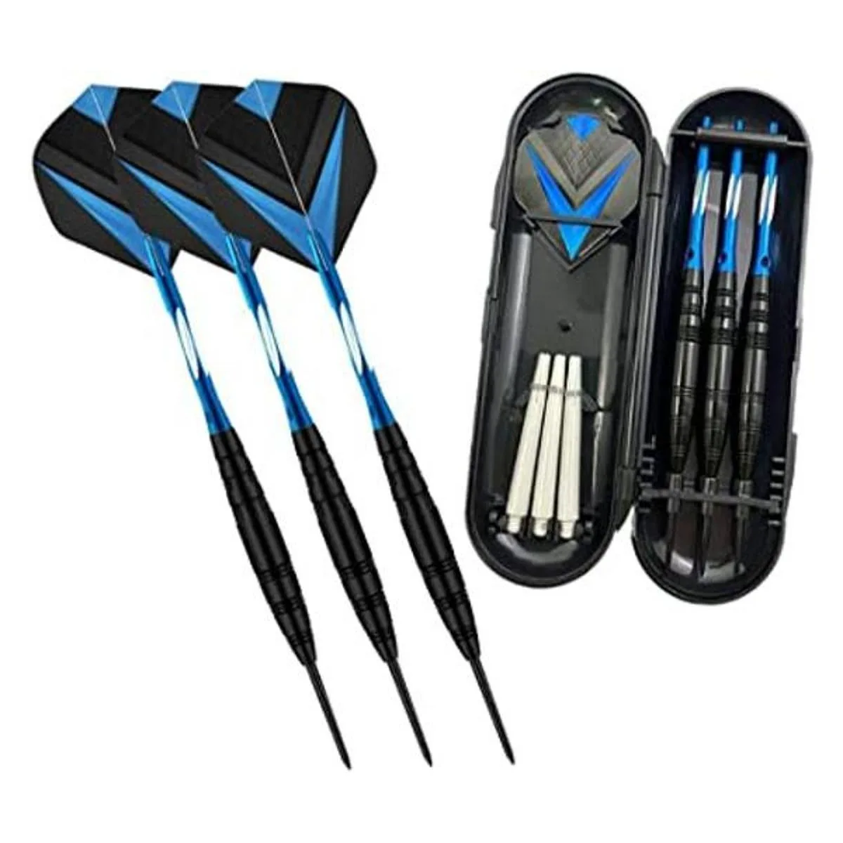 Juego de dardos de punta de acero de 0.78 oz Vuelos de PET estándar, ejes de dardos de aluminio, con anillos tóricos, ejes de aluminio extra, dardos y estuche portátil para dardos 3 unidades