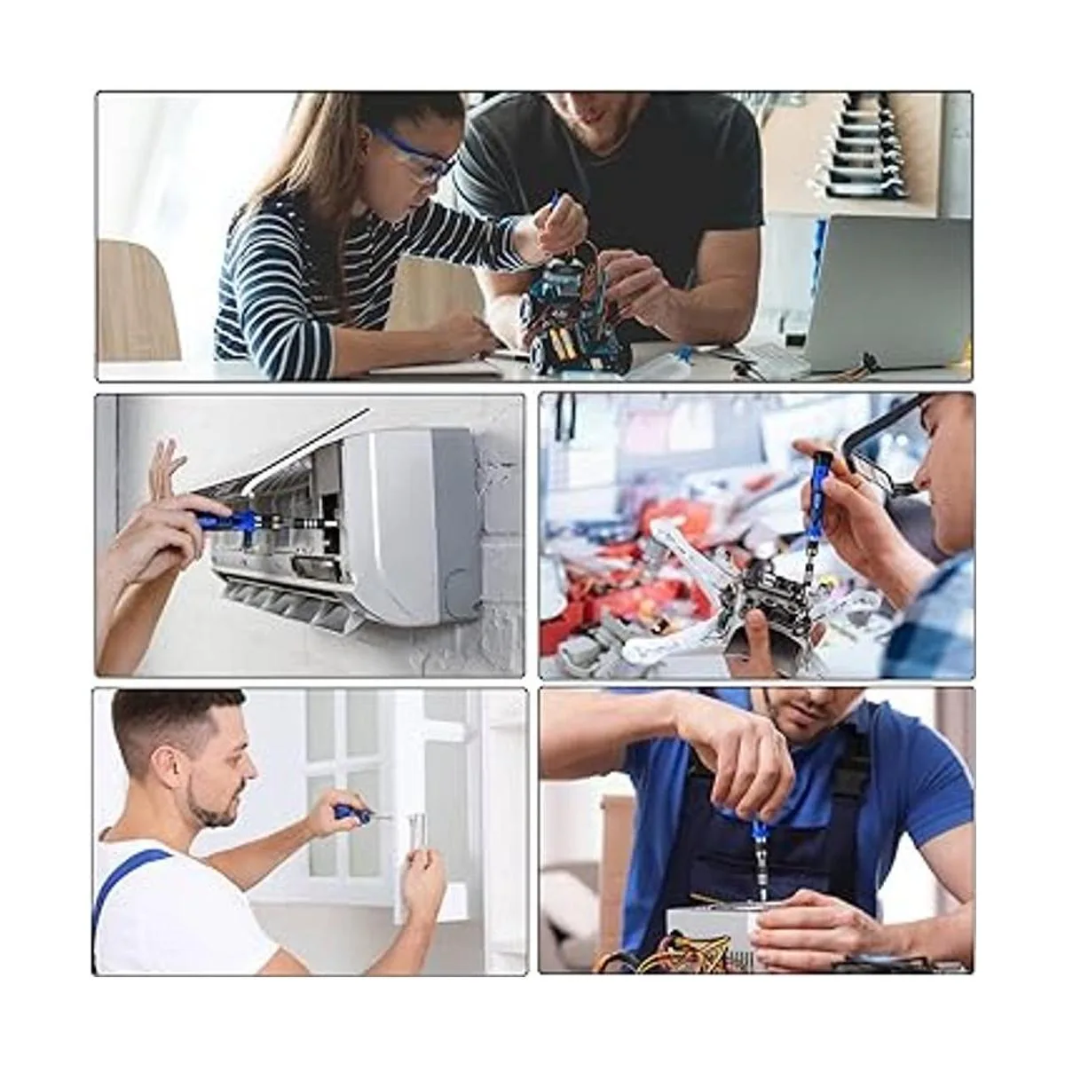 Material de alta calidad: las brocas de precisión están hechas de material CrV, después de un tratamiento de enfriamiento de alta temperatura, el HRC es de hasta 60, resistente y duradero, y puede morder con precisión el tornillo. El juego de destornilladores electrónicos también está equipado con un enchufe hexagonal como convertidor, que se puede combinar con un destornillador eléctrico con un diámetro de 0.236 in. También hay un magnetizador, que puede aumentar el magnetismo para atraer tornillos. Las almohadillas magnéticas de 5.7 x 3.3 pulgadas pueden absorber pequeñas piezas de metal al desmontar.