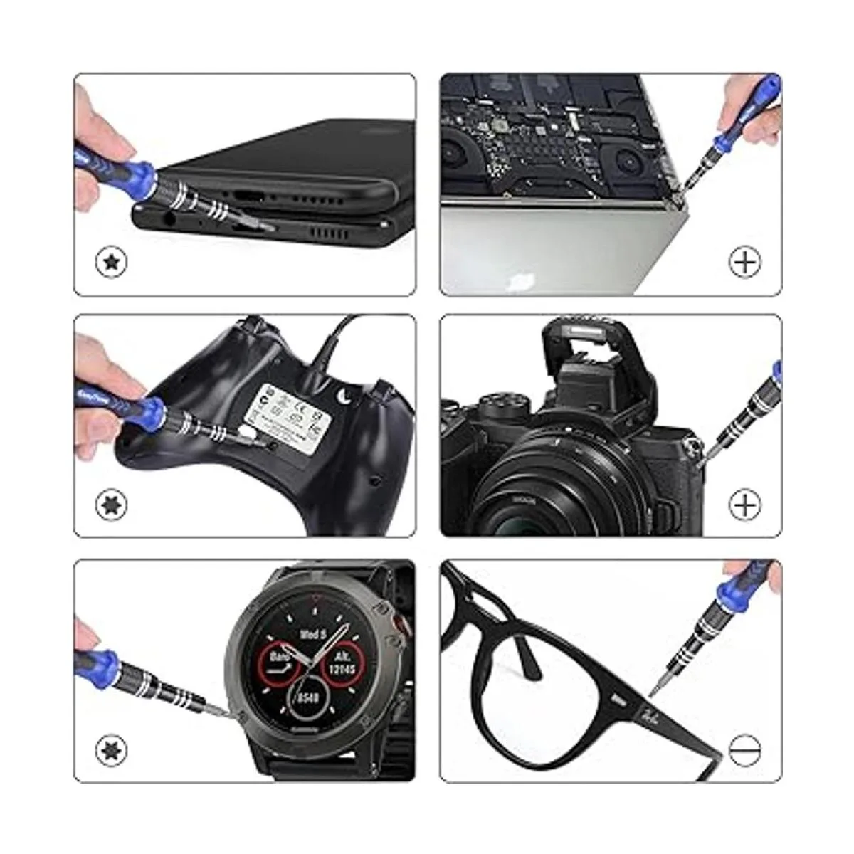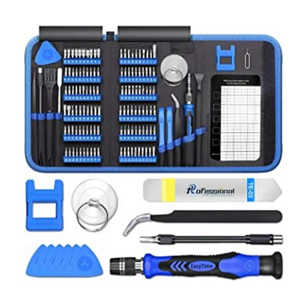 Juego multifunción: este kit de herramientas para computadora contiene 120 brocas de precisión con un tamaño de 0.157 in, y 20 accesorios prácticos, como asas de destornillador, barras de extensión, palancas, imanes, etc. El kit de destornillador para portátil es capaz de reparar varios productos electrónicos como computadora, laptop, tabletas, iPhone, PS4, Xbox, juguetes, gafas, lámparas, pequeños electrodomésticos, etc. Por ejemplo, cambiar pantallas, reemplazar piezas vitales electrónicas, limpiar, desmontar y reorganizar equipos de construcción.