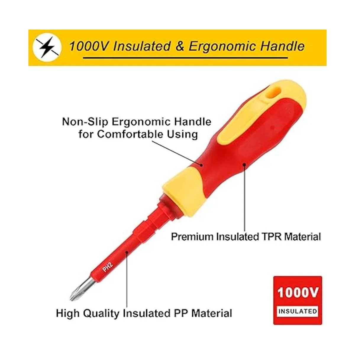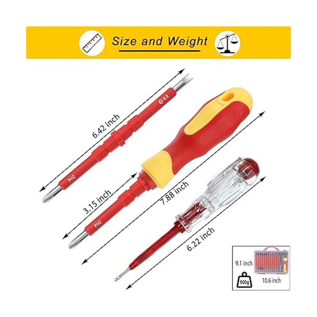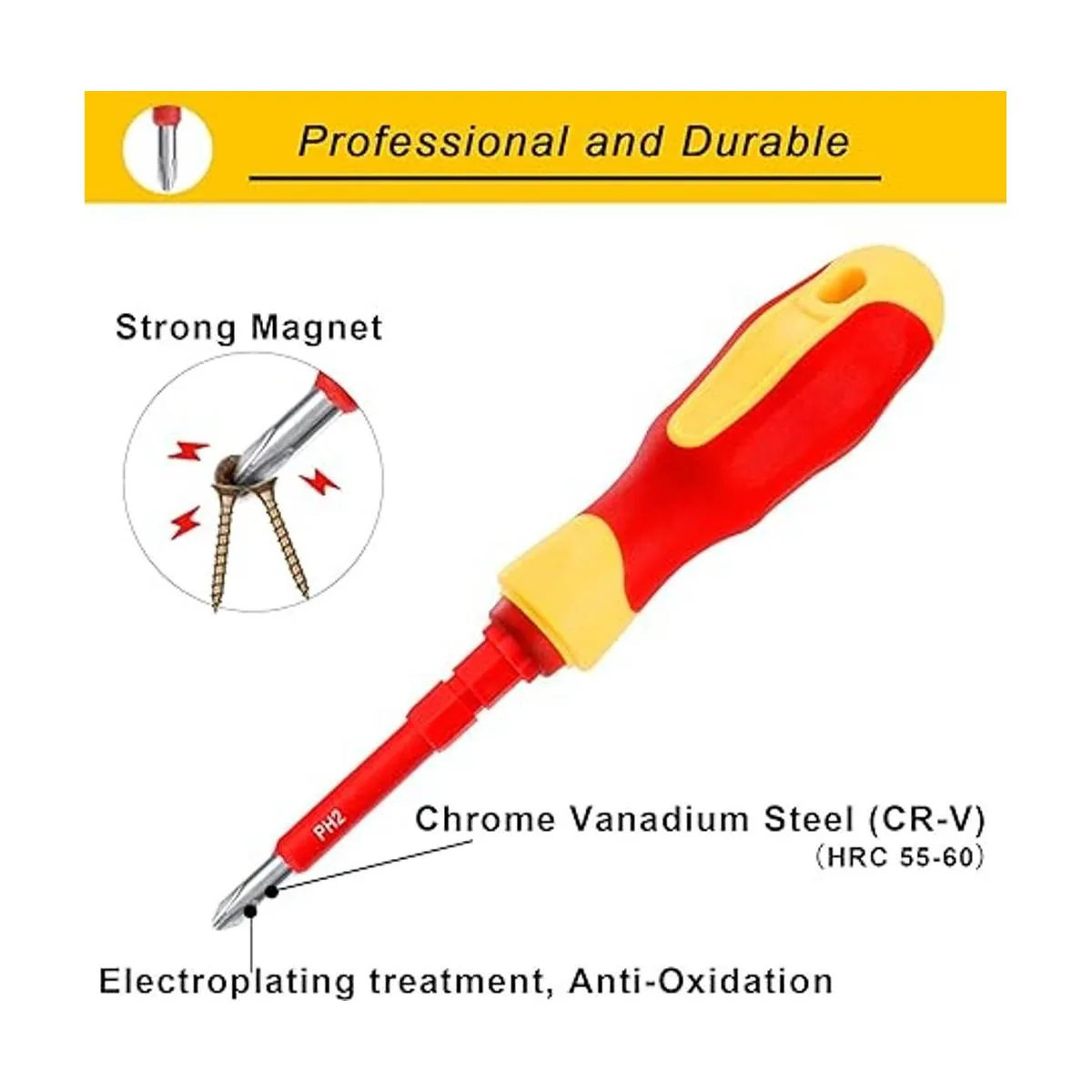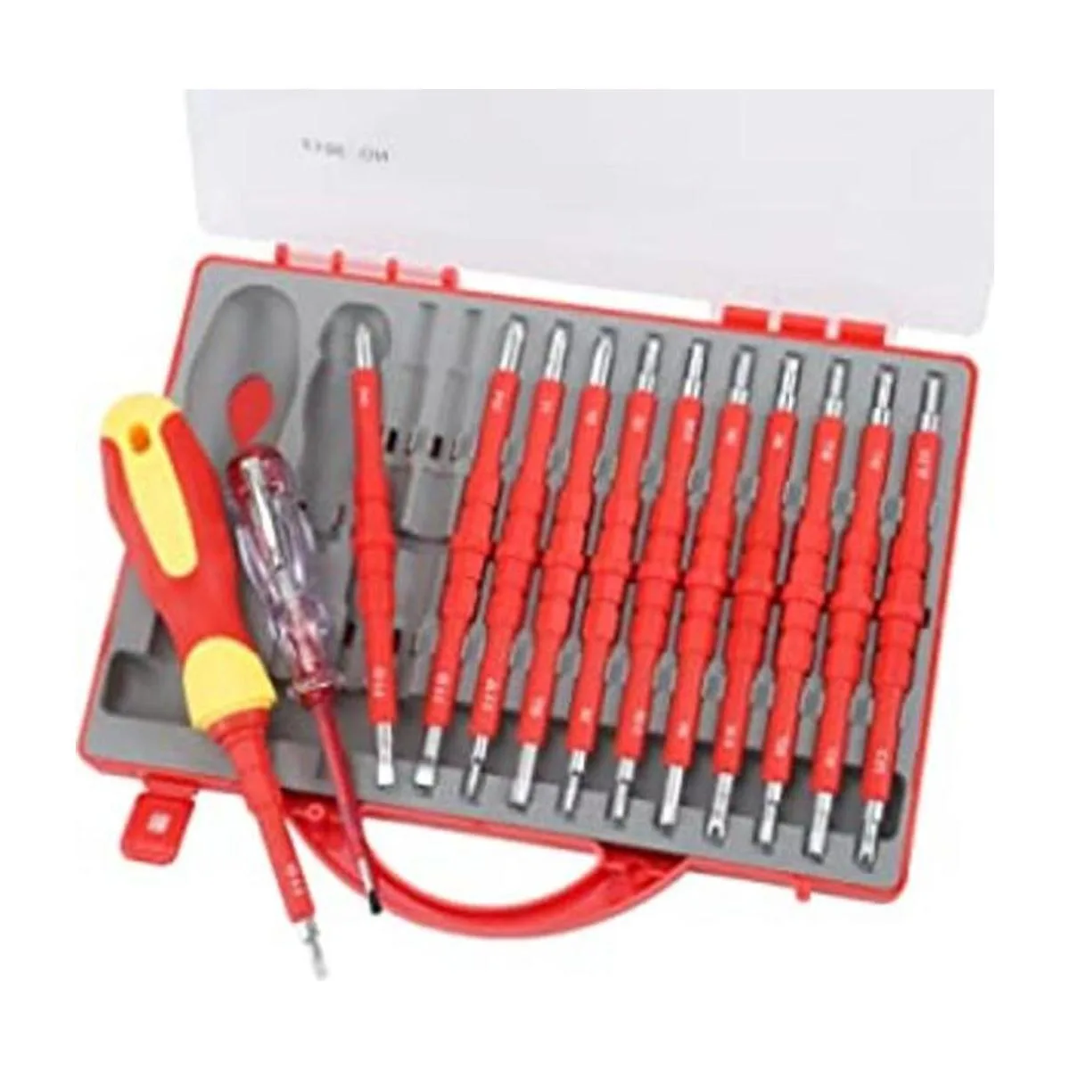 Aislamiento y profesional: este juego de destornilladores eléctricos con funda utiliza material aislante TPR y PP para el mango y la hoja circundante, garantiza estándares de trabajo seguros de 1000 voltios. El bolígrafo eléctrico 24250V y el juego de brocas magnéticas funcionan juntos para ayudarte a protegerte de descargas eléctricas. Así que no tienes que preocuparte por la seguridad y disfrutar de tu trabajo.
