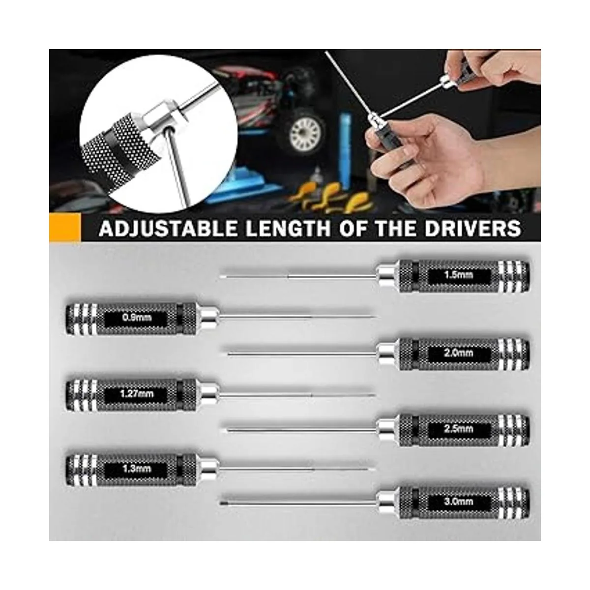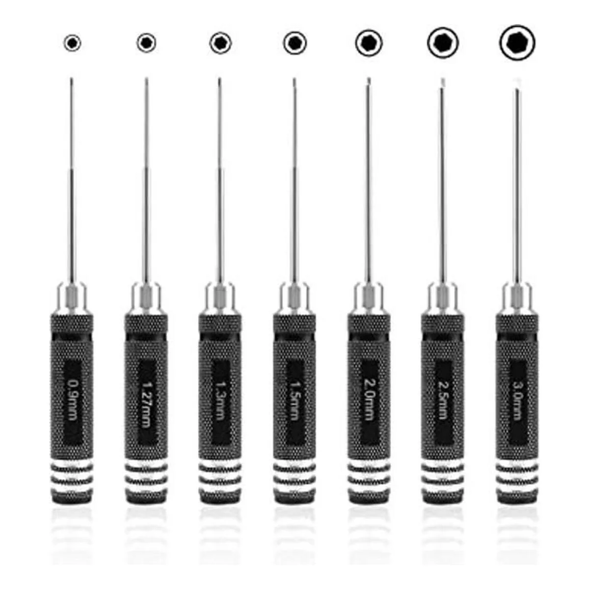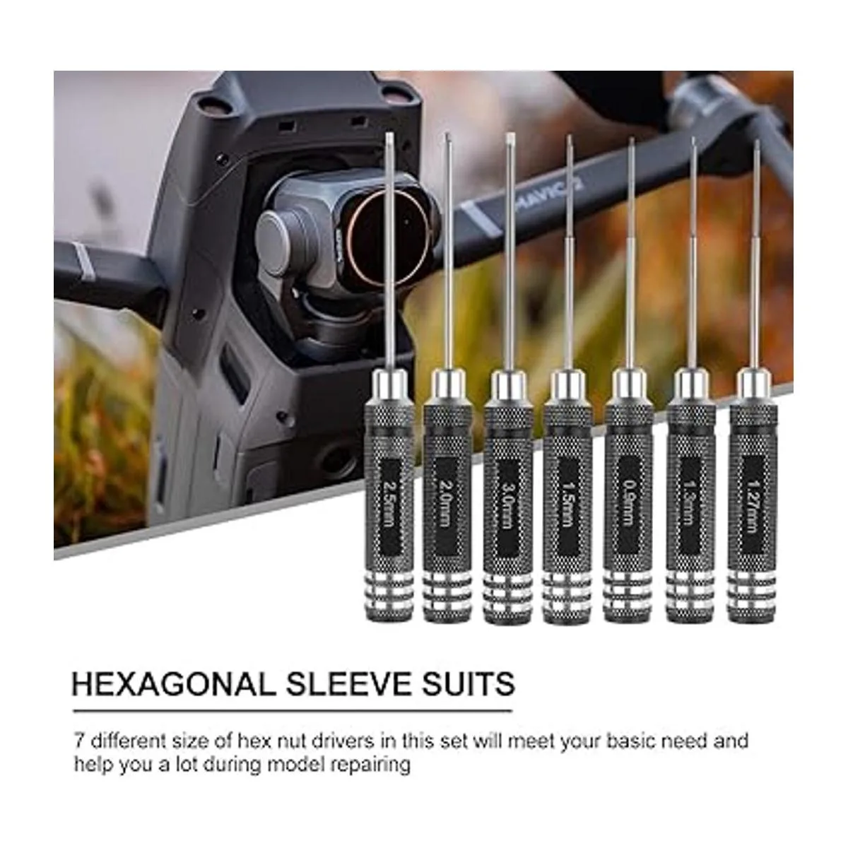 Juego de herramientas de destornillador hexagonal: se utiliza en modelos de aviones, helicópteros RC, drones y otros lugares donde se necesitan quitar los tornillos hexagonales.