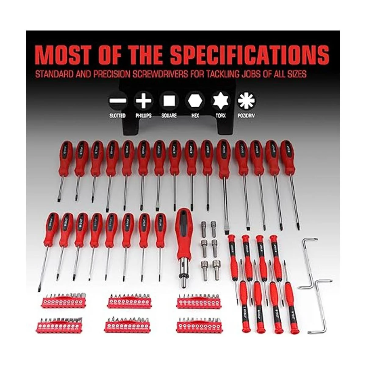 Destornilladores estándar y de precisión utilizados para manejar varios tamaños de trabajo, puede ayudarte eficazmente a completar tareas grandes y pequeñas.