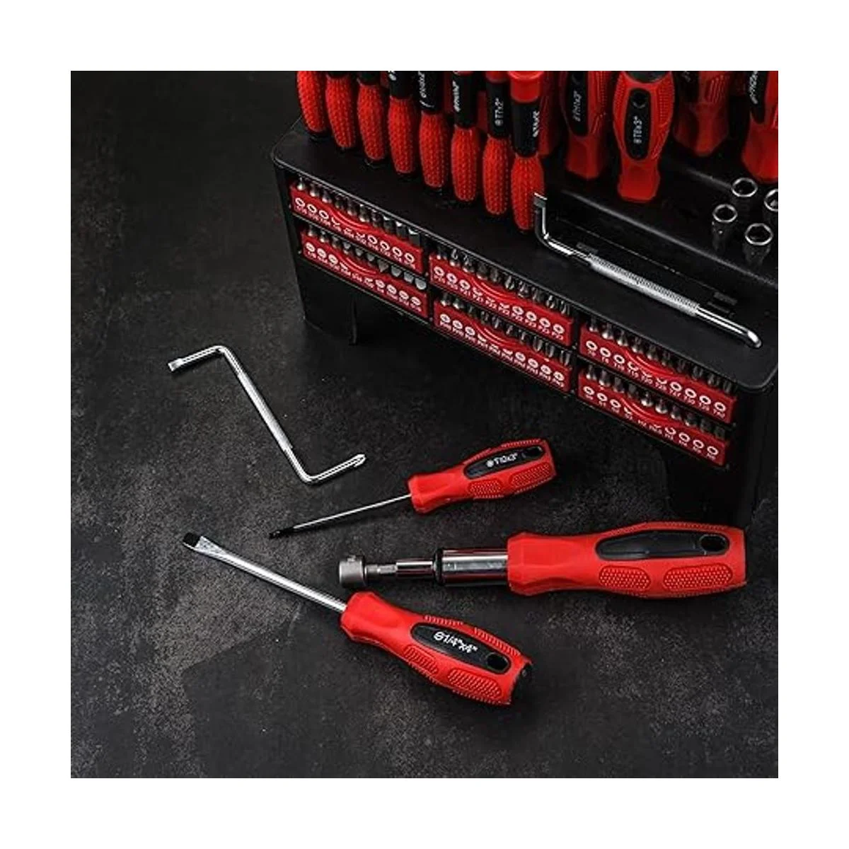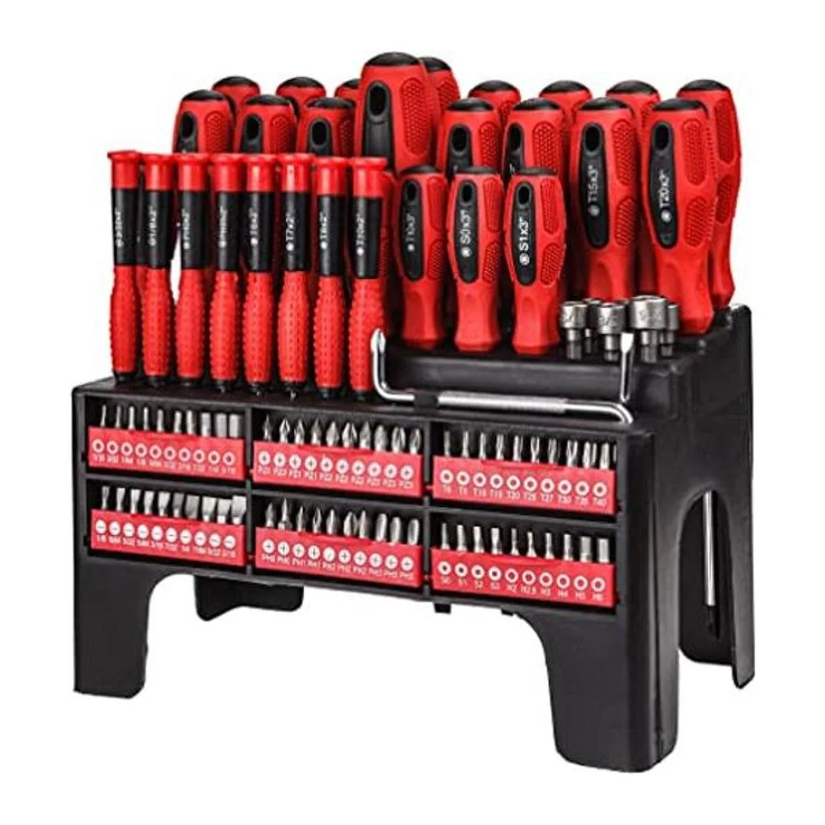 Juego de destornilladores magnéticos de 100 piezas con estante, punta magnética, herramientas de reparación comunes, ideal para regalo