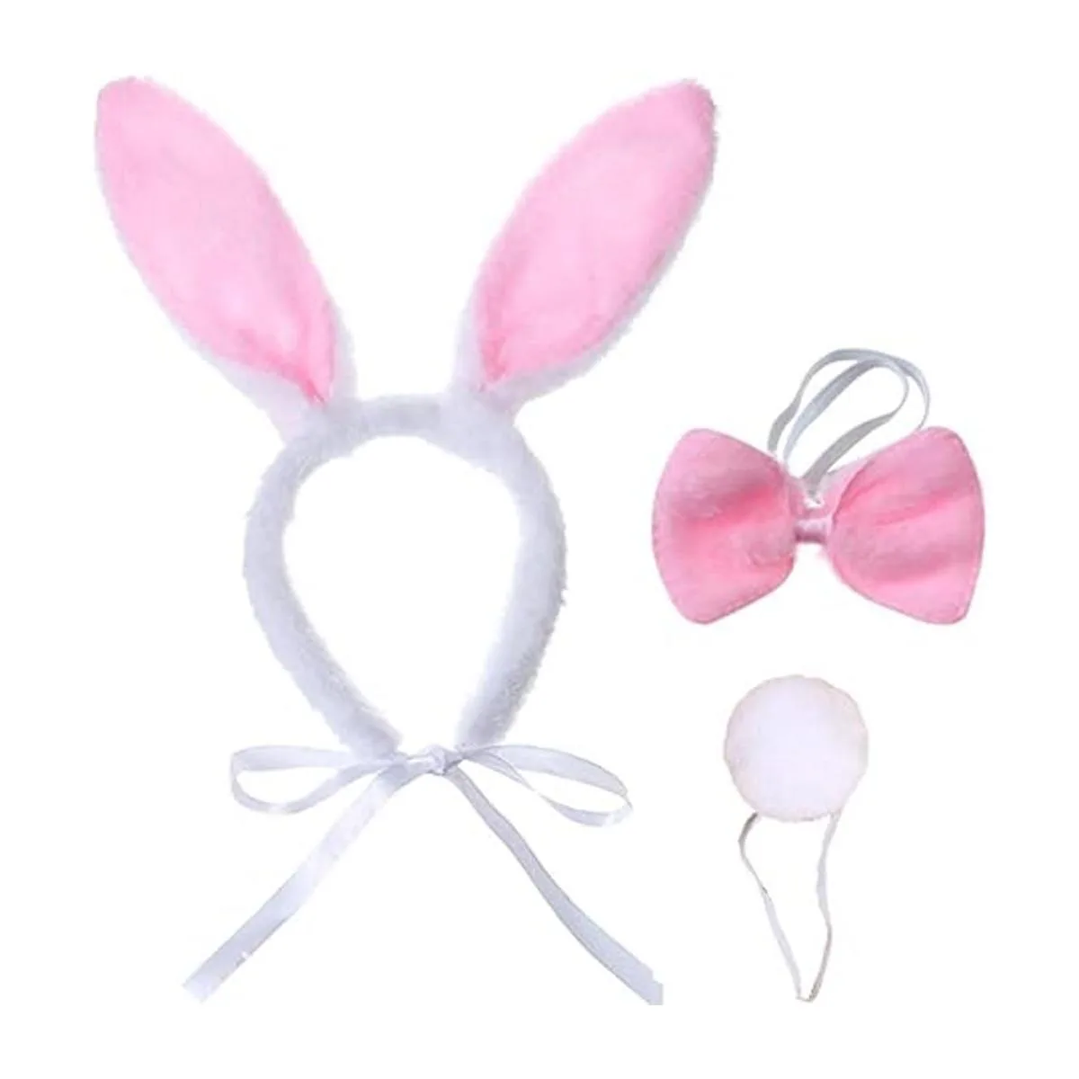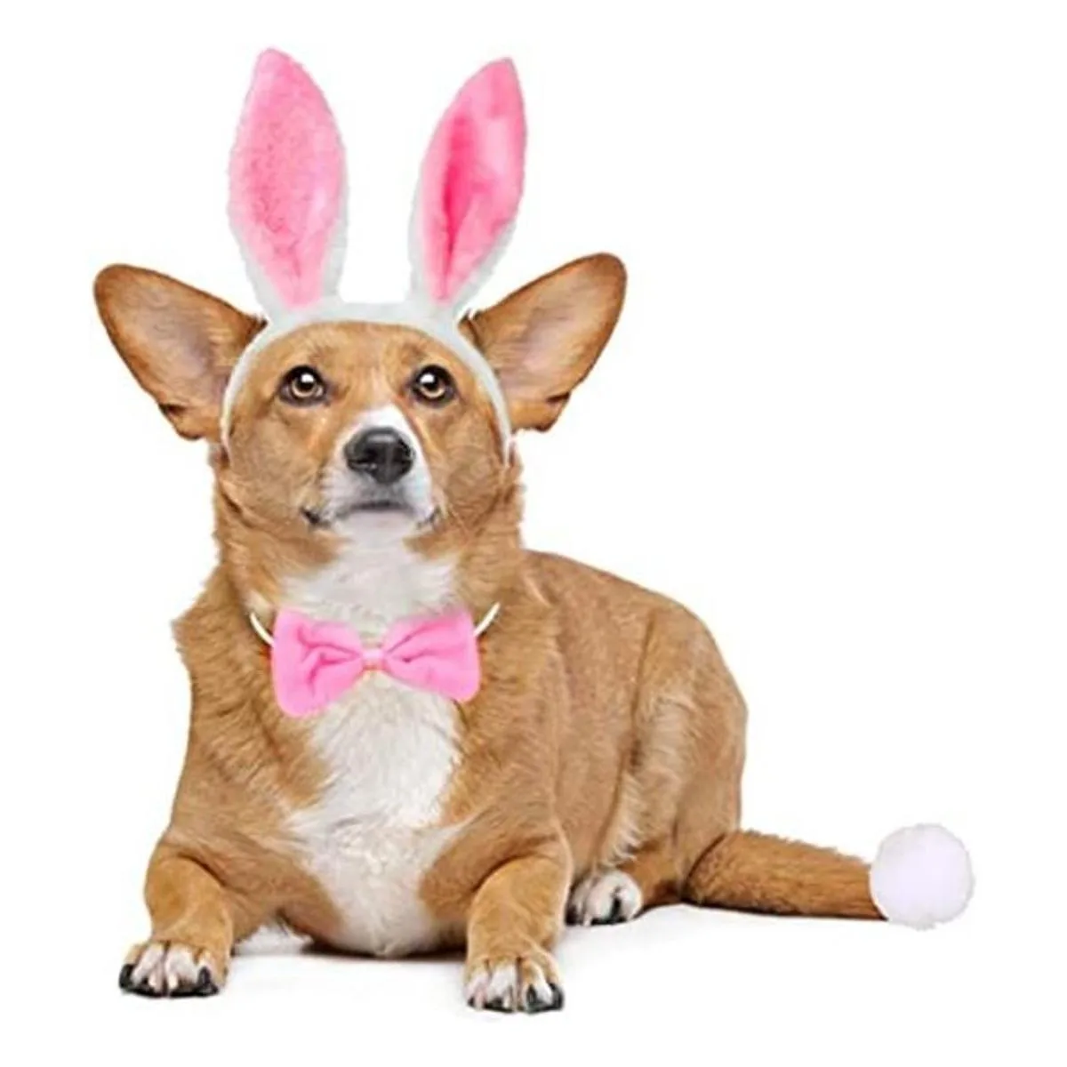 Juego de disfraz de conejo para perro, orejas de conejo para mascotas, diadema con cola y collar de pajarita de gato