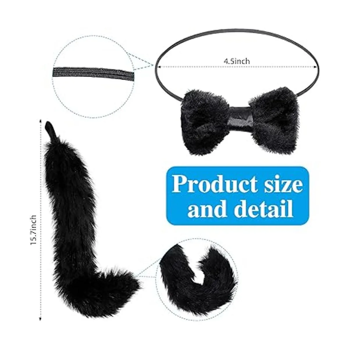 Tamaño: la cola de gato mide aproximadamente 15.7 pulgadas, y adopta con diseño de gancho y bucle, que te permite usarlo en tu cinturón fácilmente, y la diadema es adecuada para adolescentes y adultos, cómoda de llevar