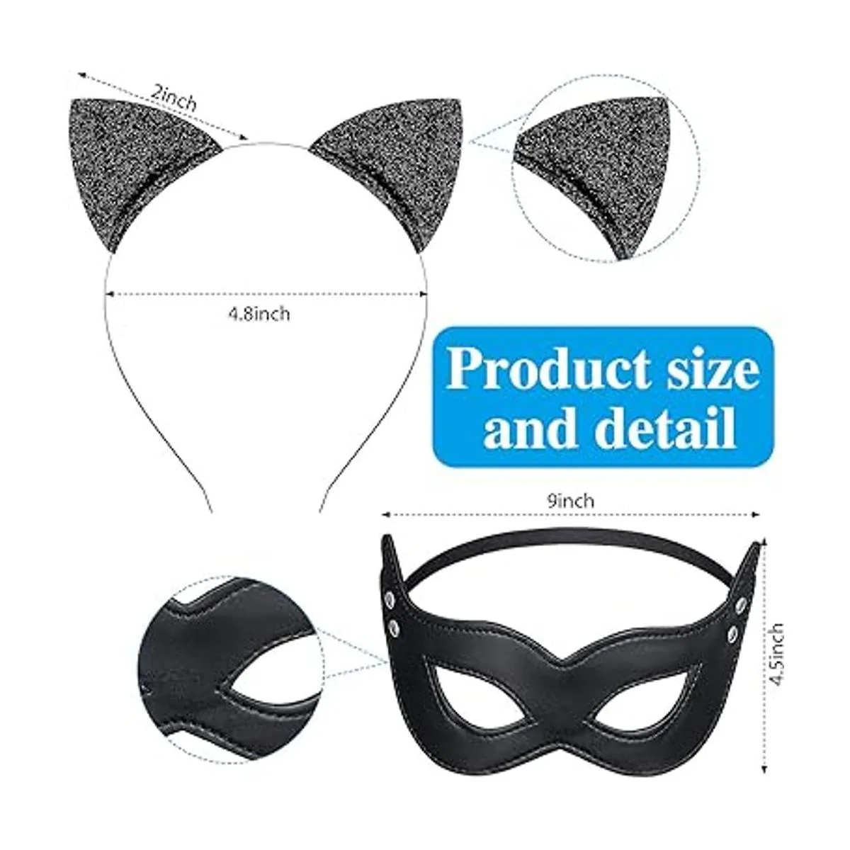 Material: la cola de gato está hecha de piel sintética de calidad, y la diadema de gato está hecha de metal y plástico de calidad, la máscara de gato está hecha de cuero confiable, ideal para bailes de máscaras, bailes, fiestas de disfraces