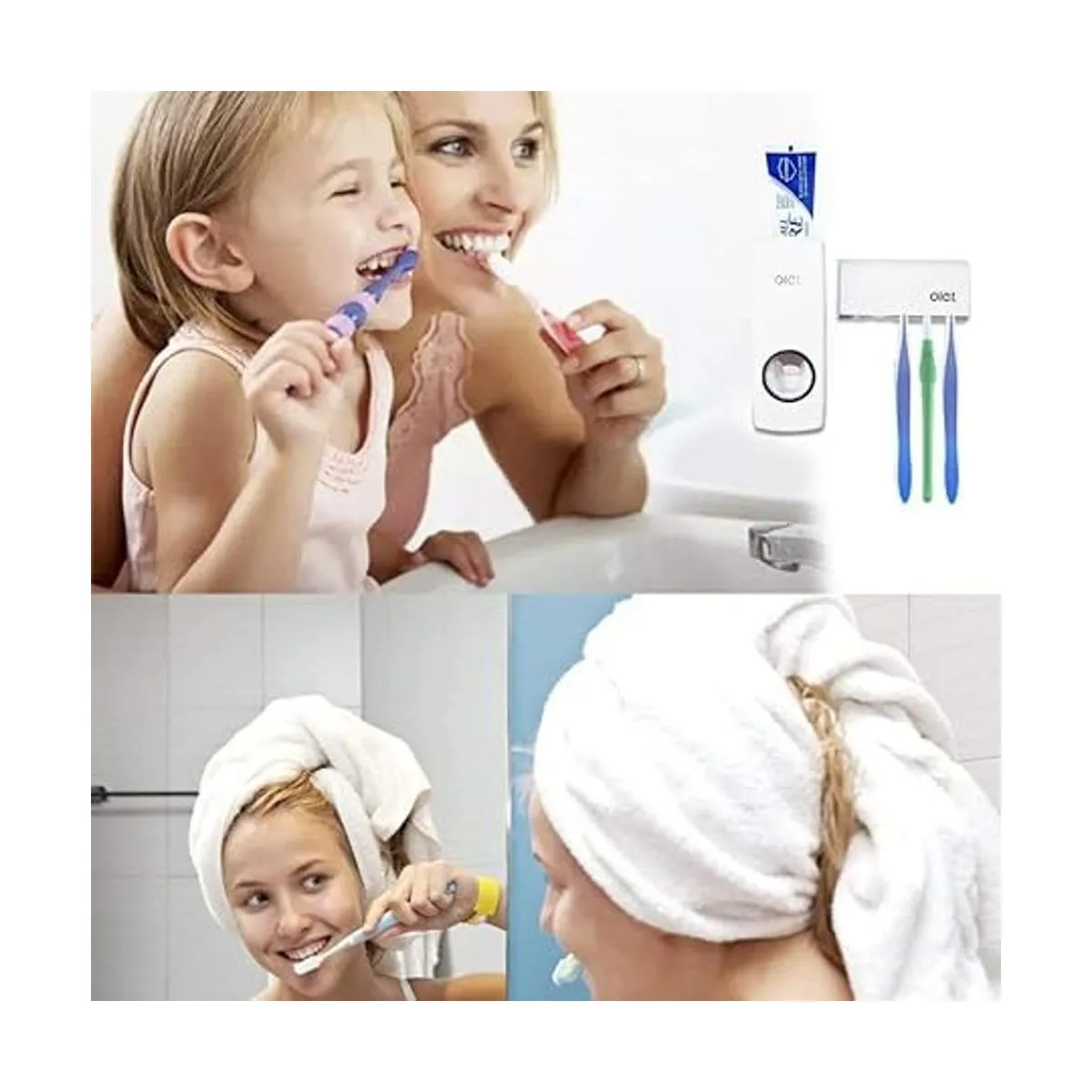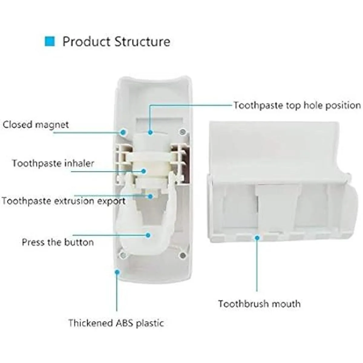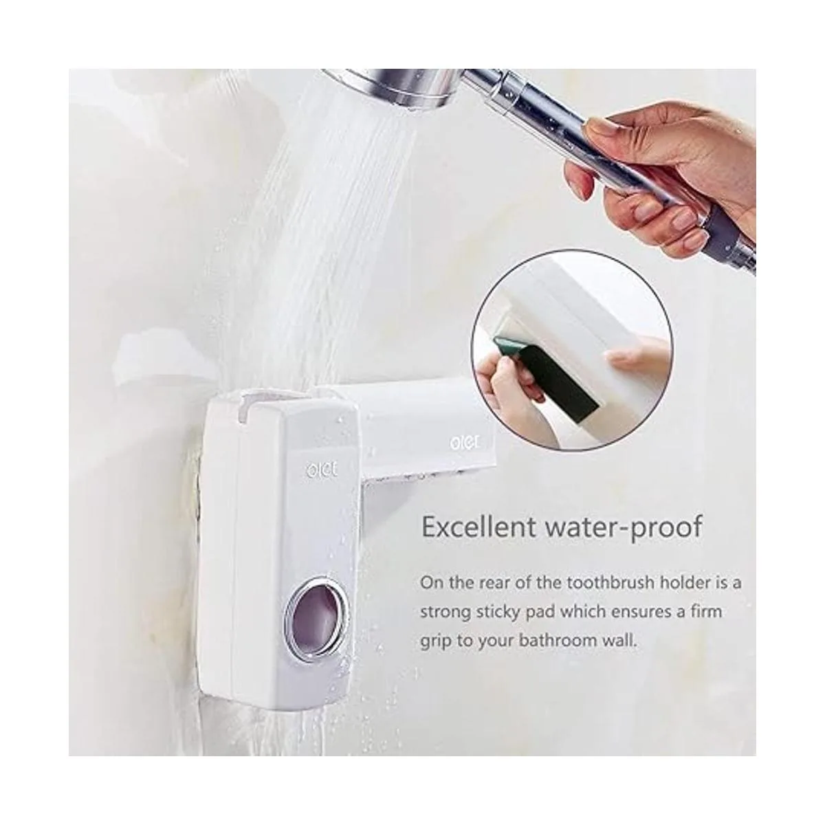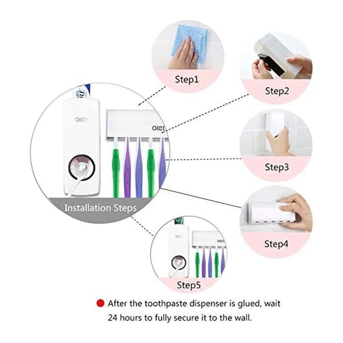 Práctico y compacto: organizador dispensador de pasta de dientes de un solo toque. Bonito y compacto, adecuado para cualquier tipo de pasta de dientes. Soporte de 5 cepillos de dientes, mantiene tu cepillo de dientes en orden.