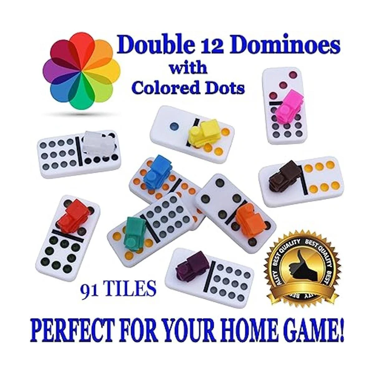 Juego de dominó de tren mexicano para adultos, juego de mesa de azulejos Juego de dominó para juegos de mesa clásicos Juego de 12 dominó doble para juegos familiares Juego de 91 azulejos con caja de aluminio