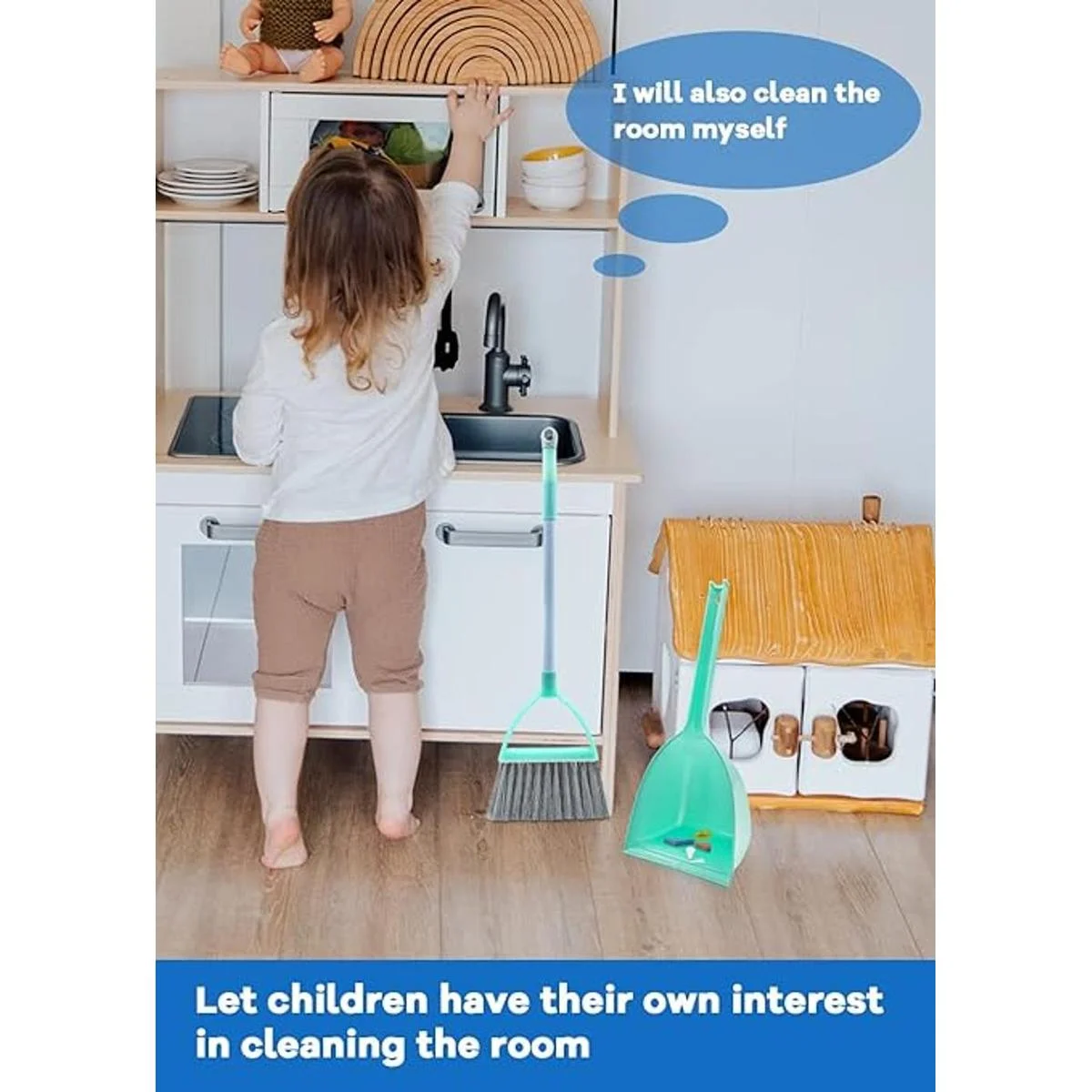 Juego de escoba para niños pequeños, escoba y trapeador para niños pequeños, juego de limpieza para niños pequeños, escoba azul y recogedor