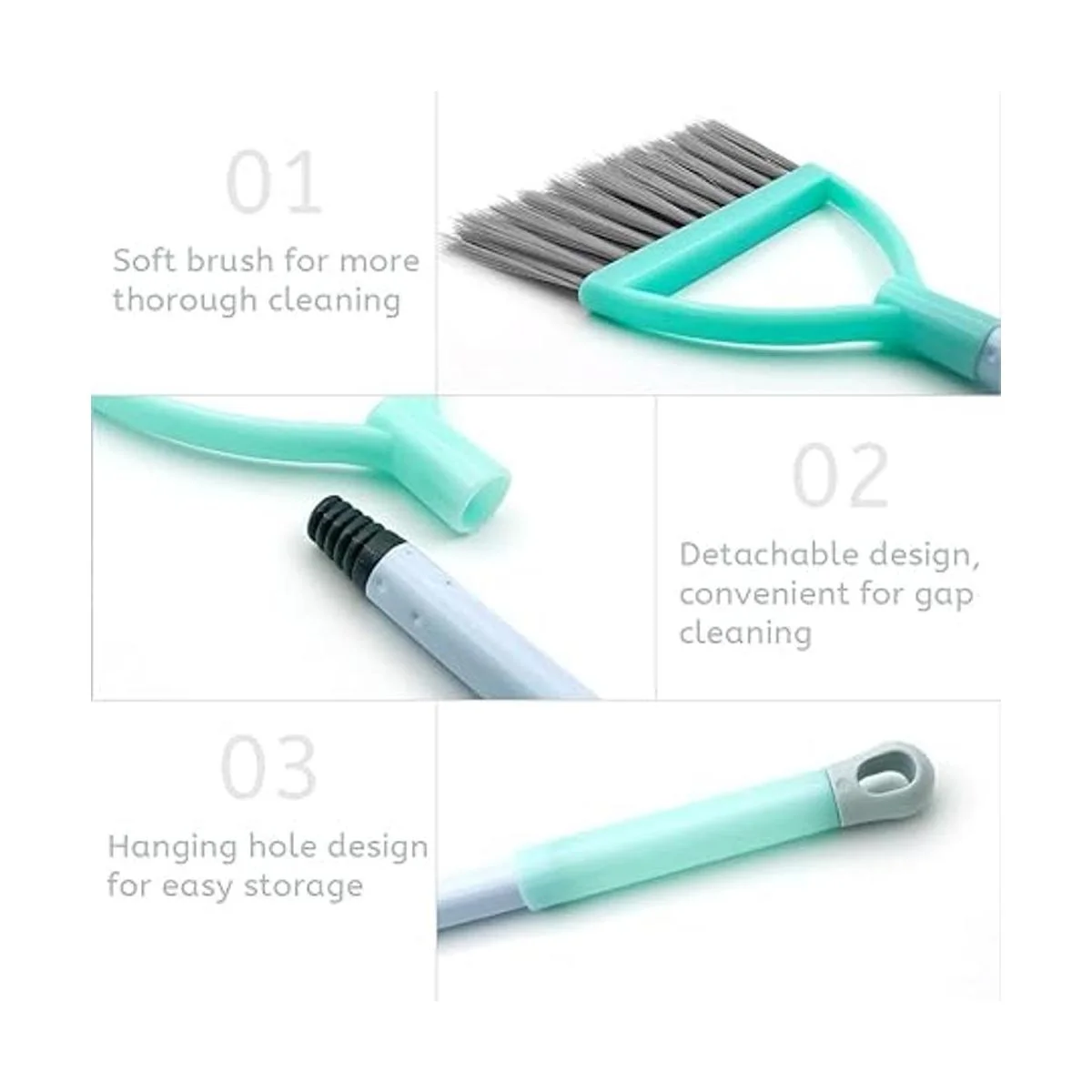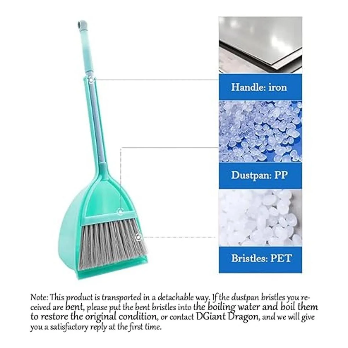 Adecuado para áreas pequeñas: la escoba adopta cerdas PET, que son flexibles y planas, fáciles de limpiar el espacio estrecho. como ventanas, esquinas de pared, cocinas, etc. El juego de escoba y recogedor pequeño es compacto y cómodo, y tiene una fuerte capacidad de limpieza.