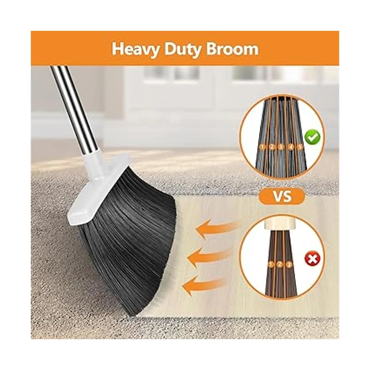 Juego de escoba y recogedor mejorado: este juego de recogedor y escoba está diseñado para ser resistente para un uso prolongado. Mango de escoba de acero inoxidable de alta calidad, recogedor grande y cerdas gruesas de escoba.
