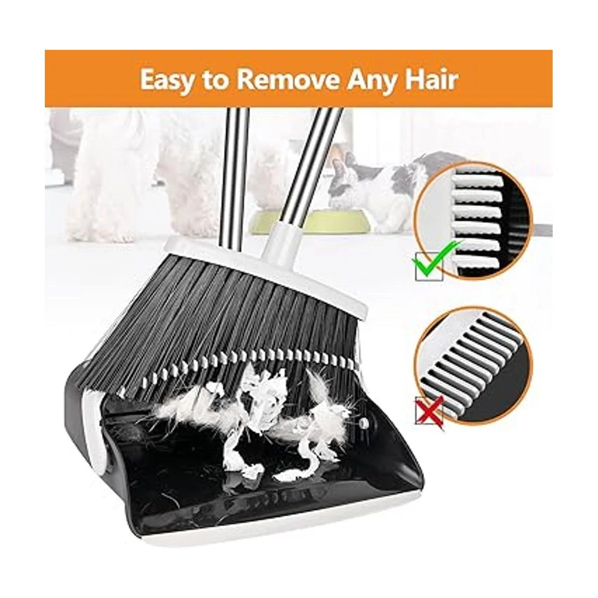 Fácil de quitar el pelo de las mascotas: el peine en el recogedor puede ayudar a deshacerse del pelo de la escoba sin usar la mano. El recogedor perfecto limpia el combo de escoba.