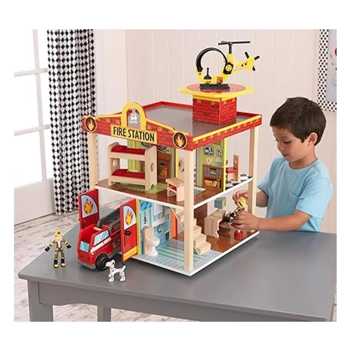 El juego de estación de bomberos KidKraft de madera ofrece 360 grados de juego imaginativo