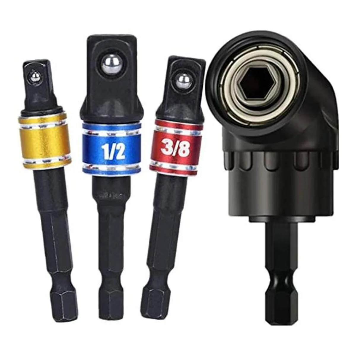 Juego de extensión de adaptador de enchufe de grado impacto, 3 piezas de 14 38 12 pulgadas universal y taladro de ángulo recto de 105 grados, adaptador de enchufe hexagonal