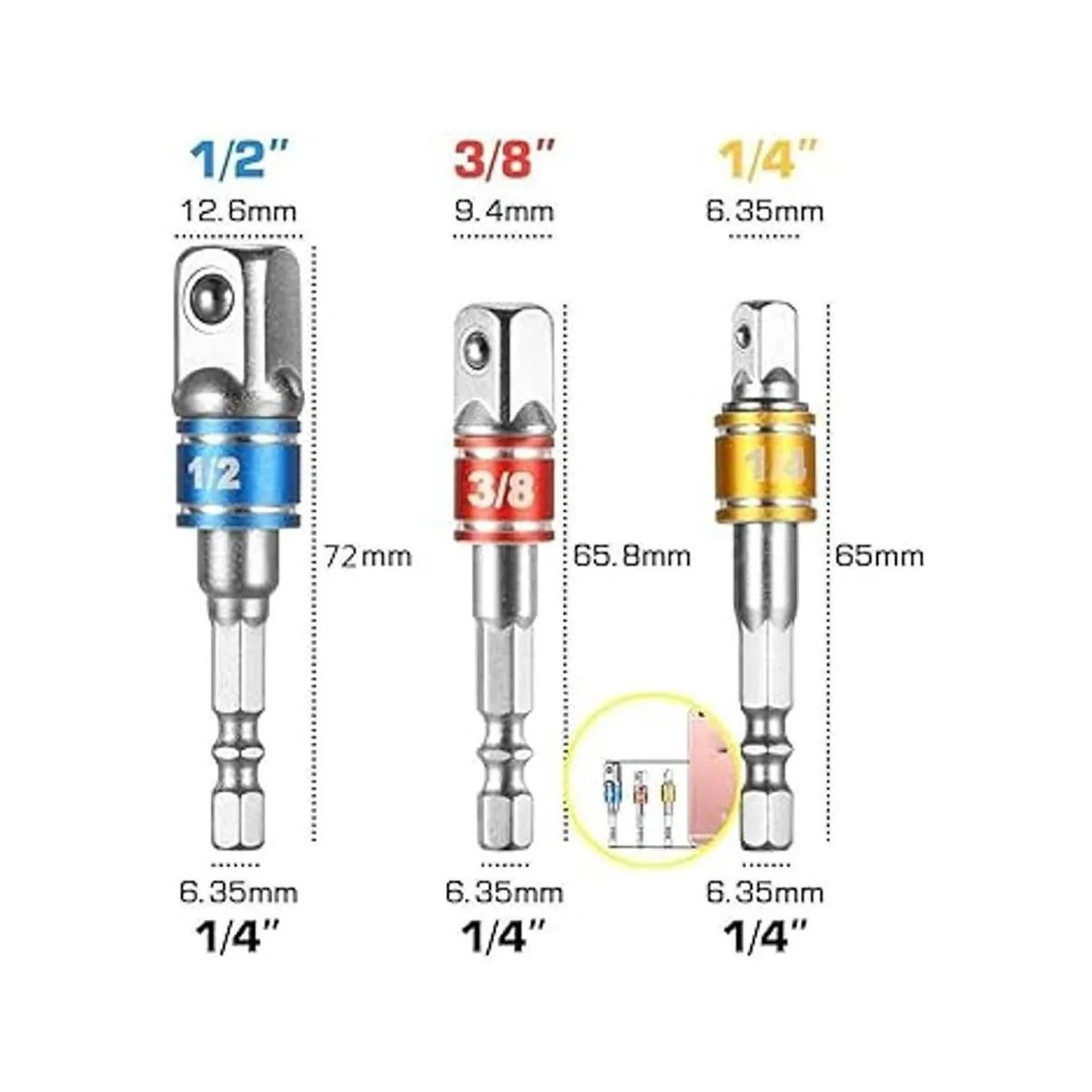 Juego de brocas de destornillador de impacto: adaptador de vástago hexagonal de 1/4, broca de destornillador de tuerca cuadrada de 1/4 pulgadas, 3/8 pulgadas, 1/2 pulgadas, conecta a los destornilladores de tuerca hexagonal estándar, sierras de agujero de impacto, brocas de pala y mucho más.