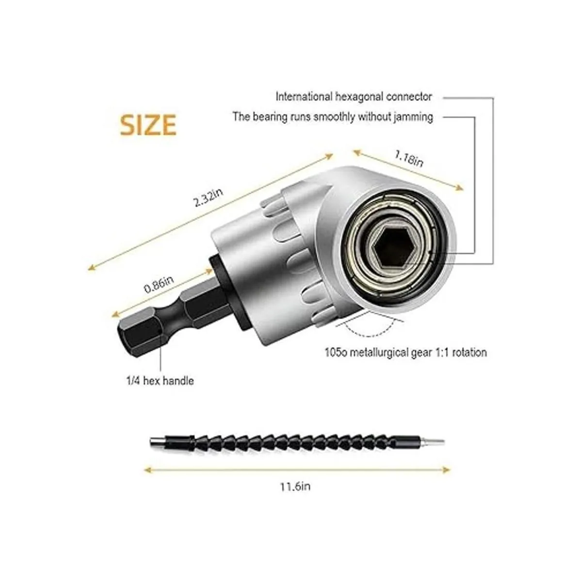 Juego de extensión de broca flexible, incluye taladro de ángulo recto de 105, extensión de broca flexible, 3 piezas de adaptador universal de enchufe de 14 38 12 pulgadas, 3 soportes de broca, kit de brocas de destornillador