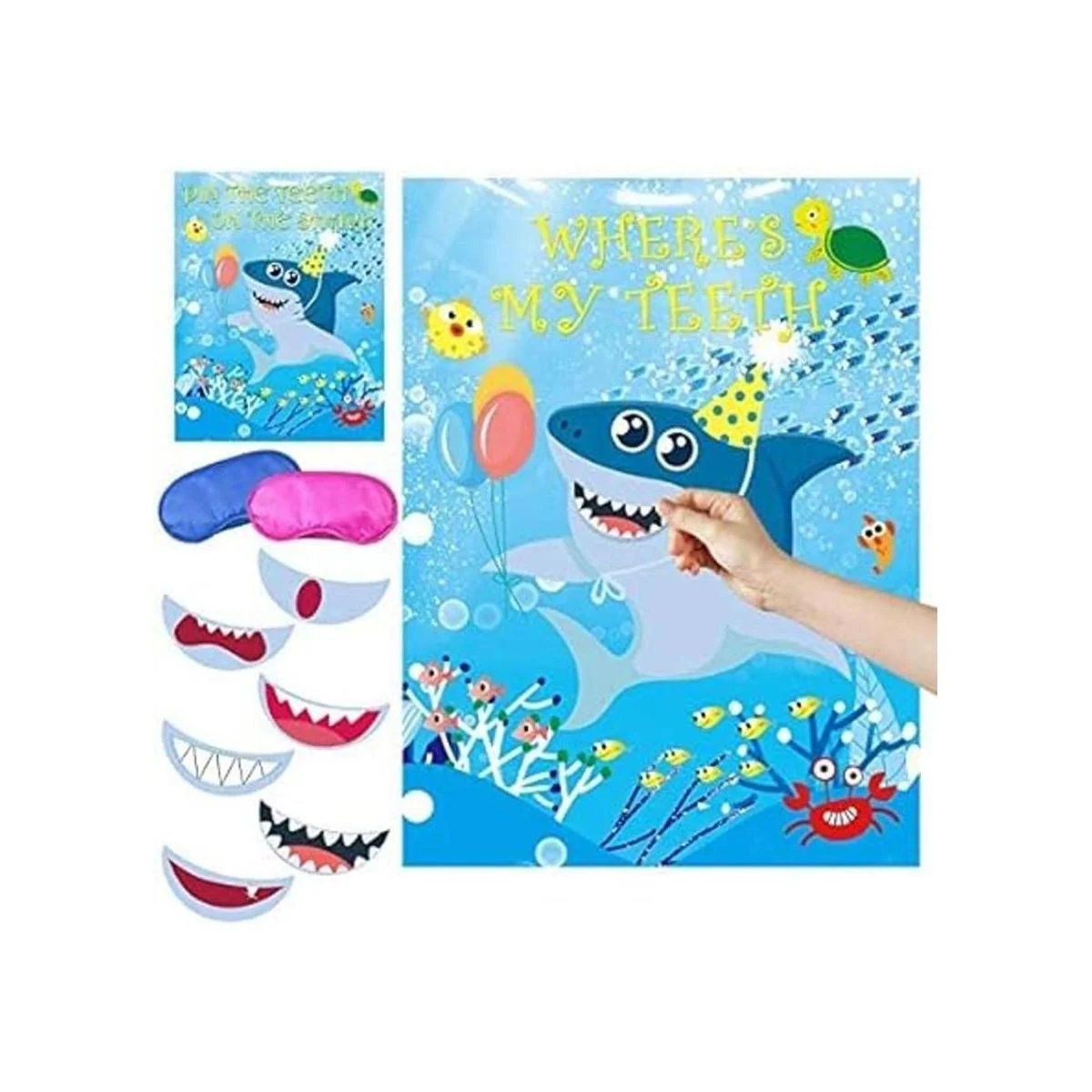 Divertido juego de tiburón: 36 dientes son suficientes para un juego de fiesta de tiburón, ayuda al pequeño tiburón a encontrar sus dientes para fijar la calcomanía de tiburón.