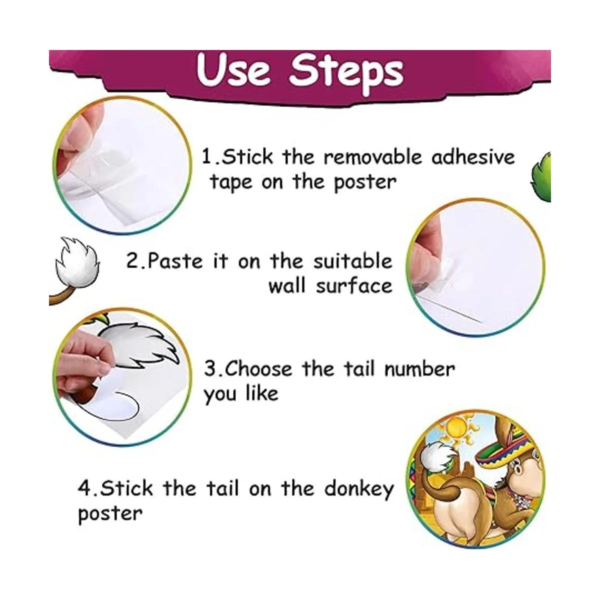 Tamaño grande: el póster de juego de burro es de 21 x 29 pulgadas, una buena opción para fiestas de niños, juegos de niños, fiesta de circo de carnaval, fiesta de aula, fiesta de cumpleaños, añadiendo más diversión a tus amigos, niños y familiares